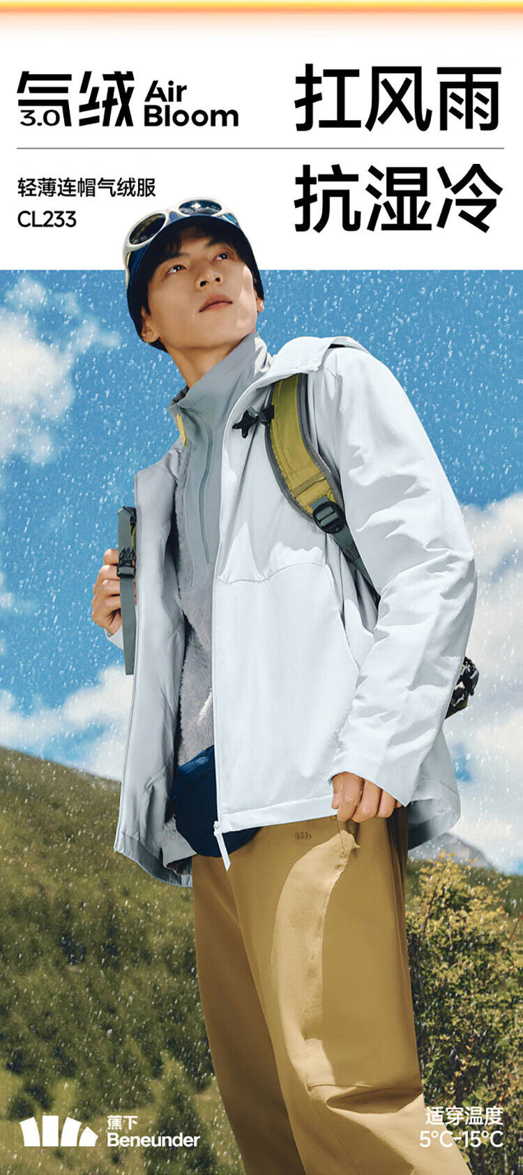 Beneunder Air Fleece Jacket Men's Autumn and Winter Warm Hooded Lightweight Jacket Outdoor CL233 Thin Gray Blue XL