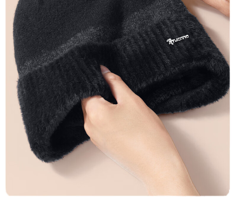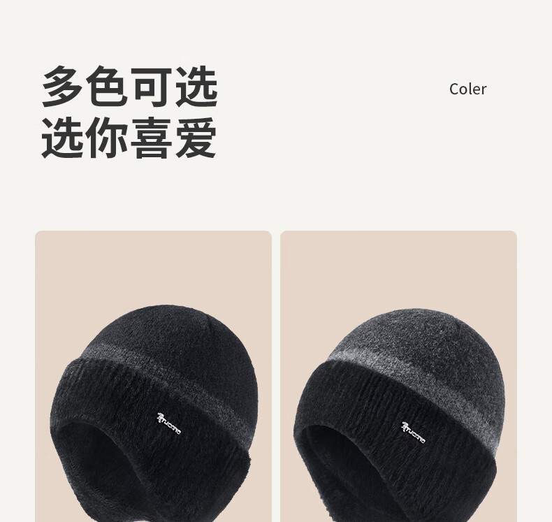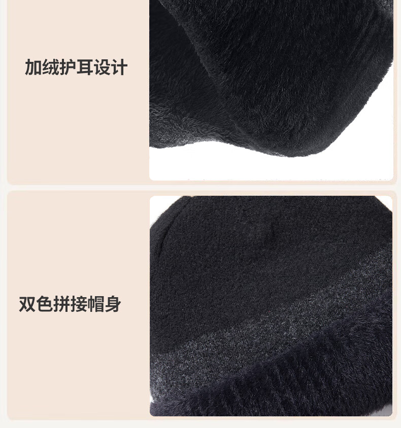 Woodpecker hat men's winter woolen hat plus velvet to keep warm and versatile cold hat loose big head circumference show face small woolen knitted hat