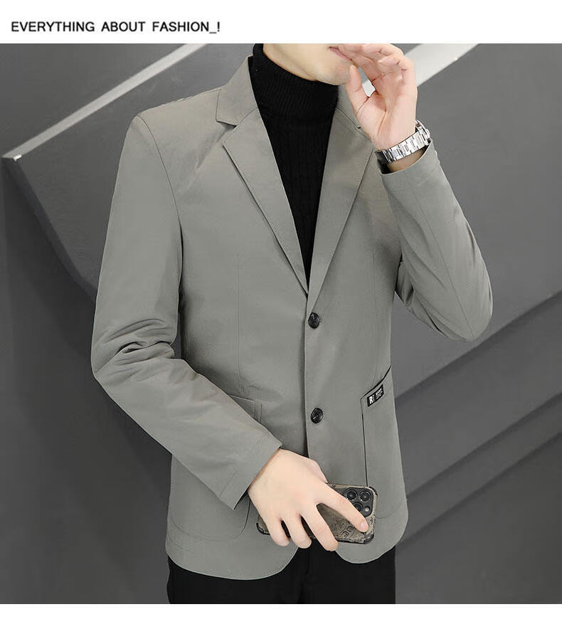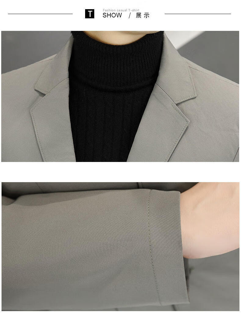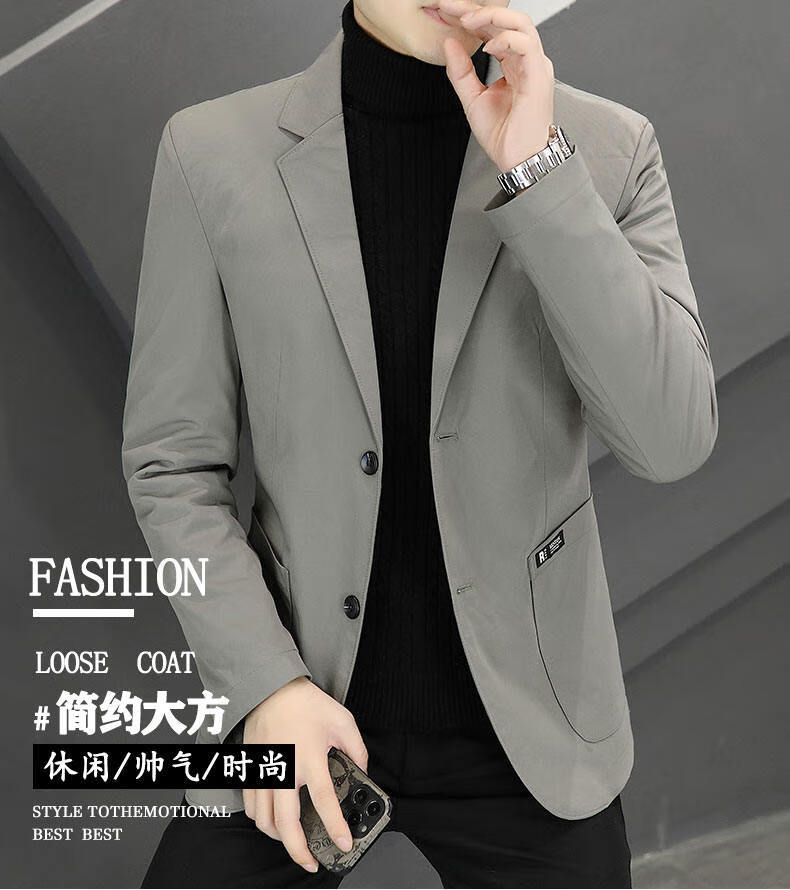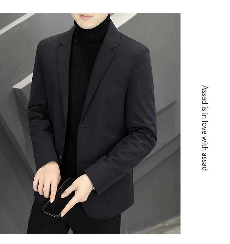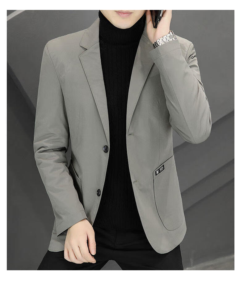 Pierre Cardin 2025 New Down Jacket Autumn and Winter Suit Jacket Men's Slim Fit Korean Style Trendy Small Suit Lightweight Warm Top Dark Gray XL 180