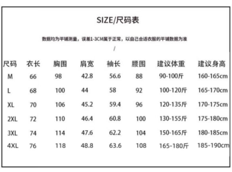 China (cm) 165 / 88-90 170 / 96-98 175 / 108-110 180 / 118-122 185 / 126-130