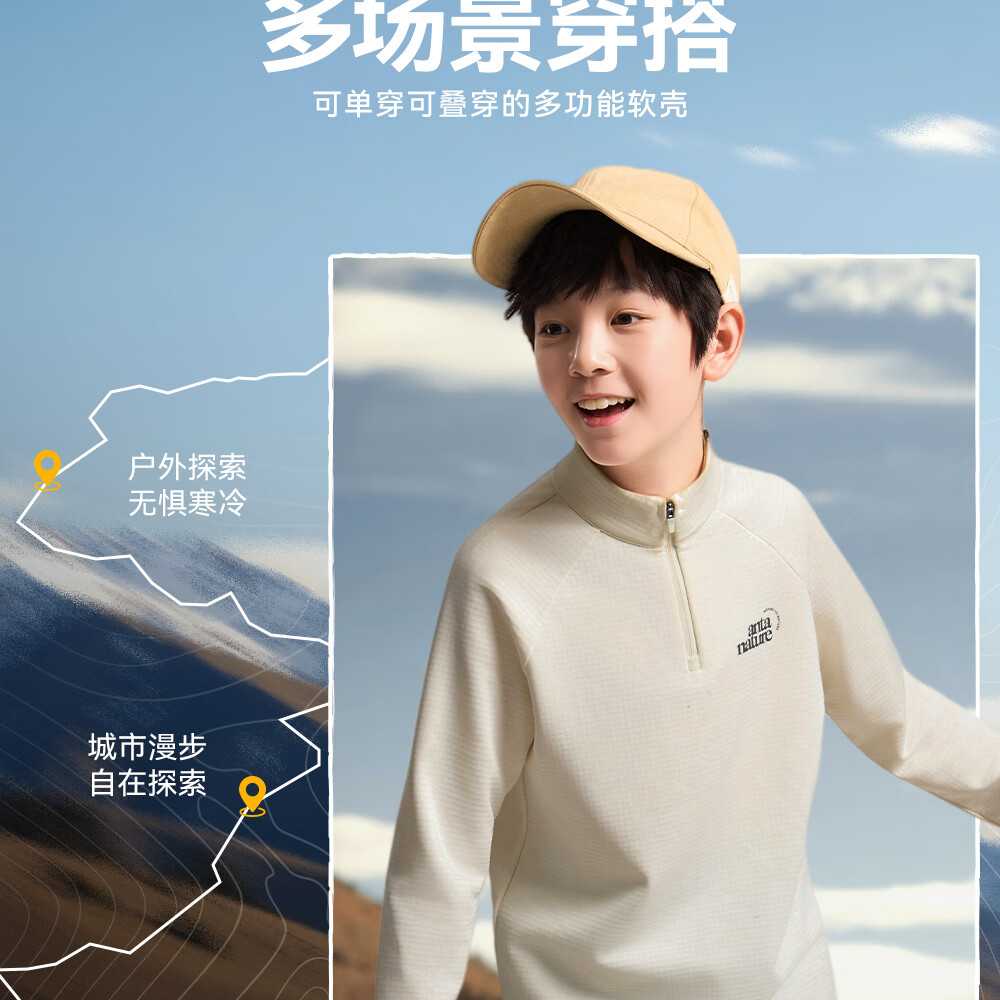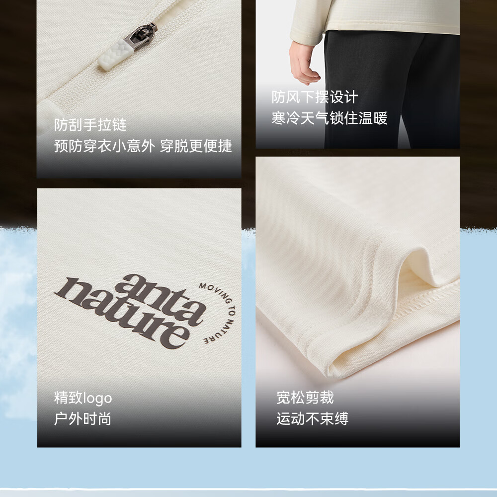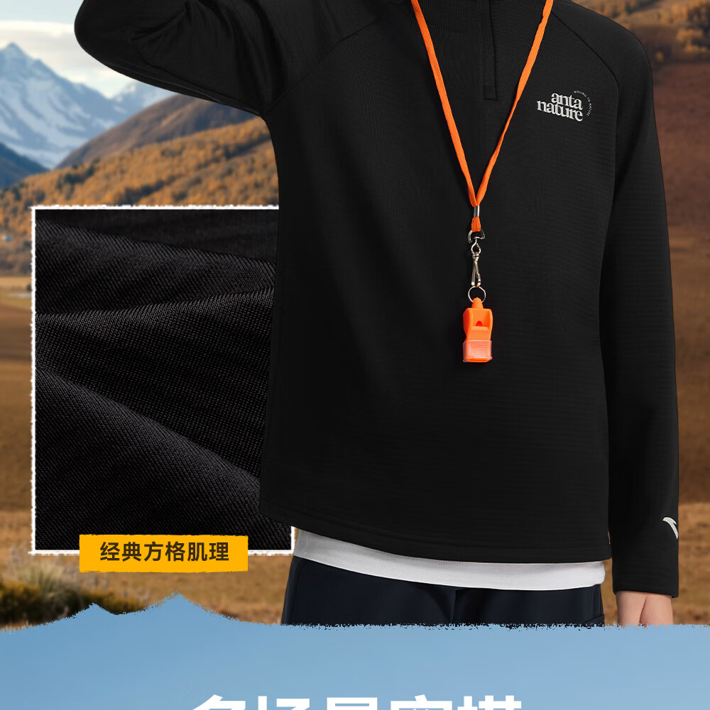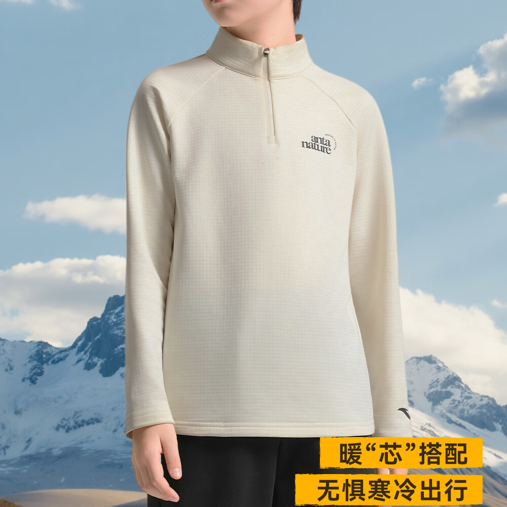 Anta children's knitted long-sleeved shirt for boys and girls, comfortable and skin-friendly, plus velvet bottoming long-sleeved shirt for both small and large children TA72546402