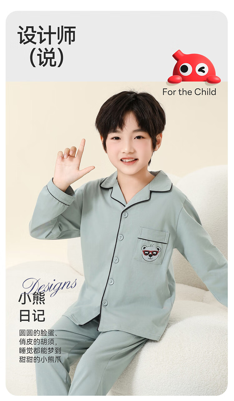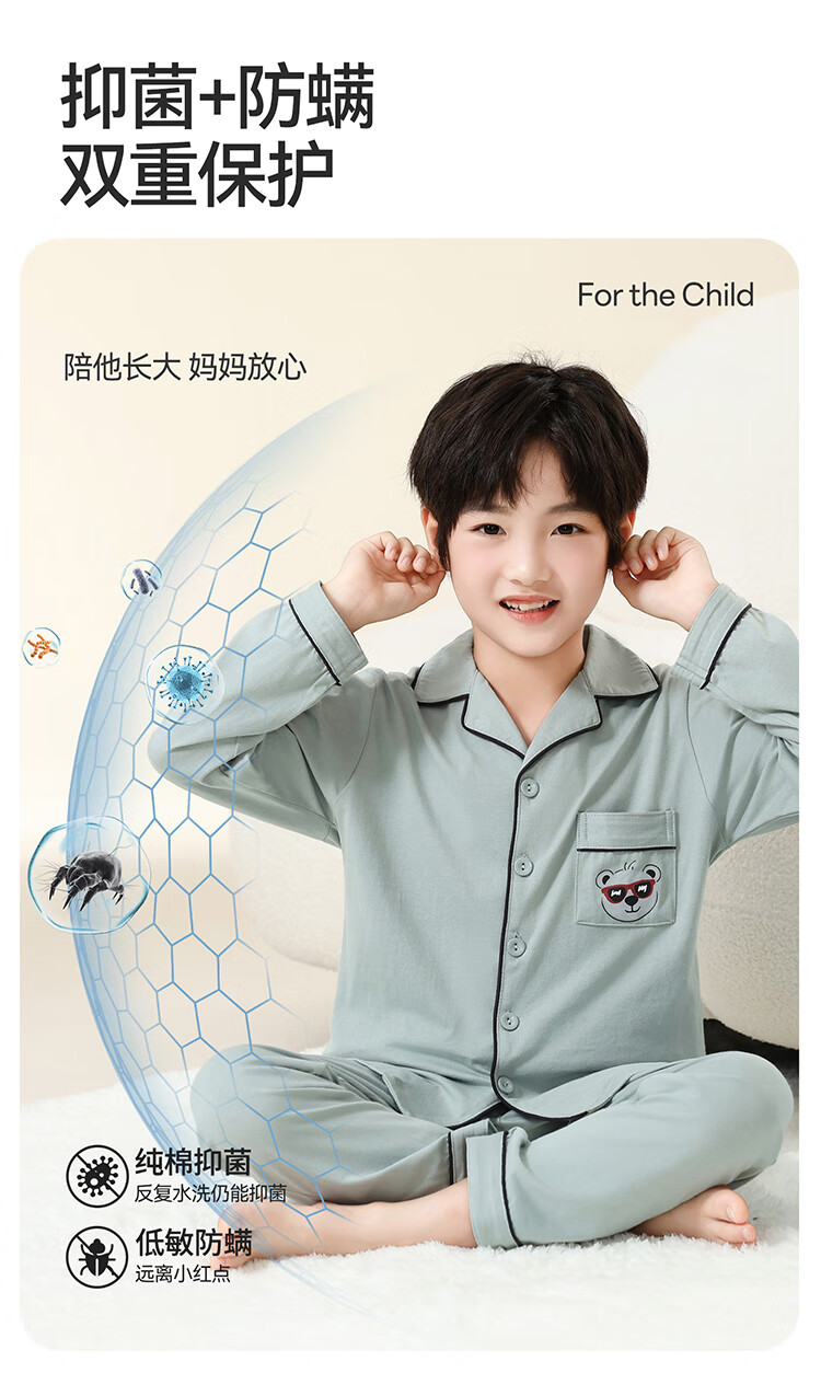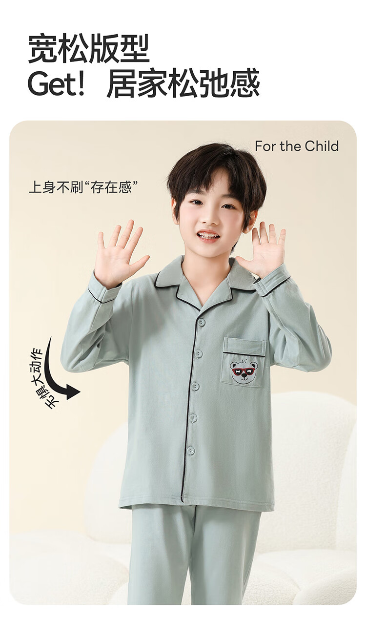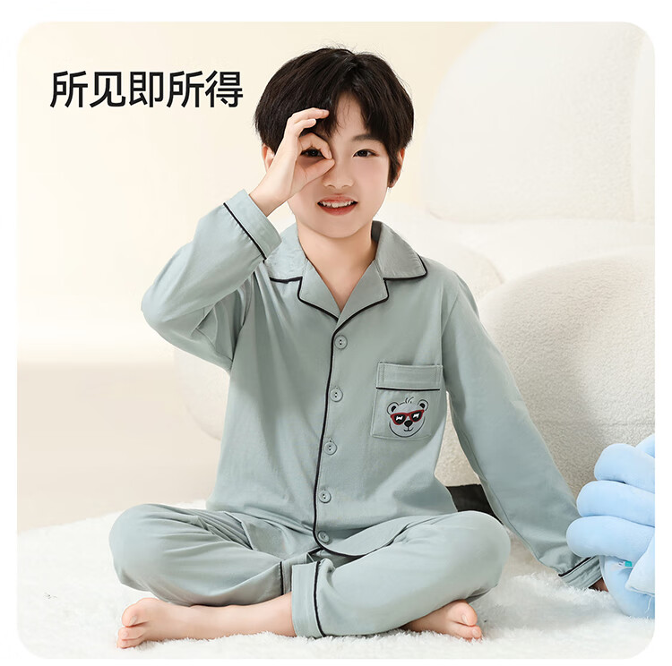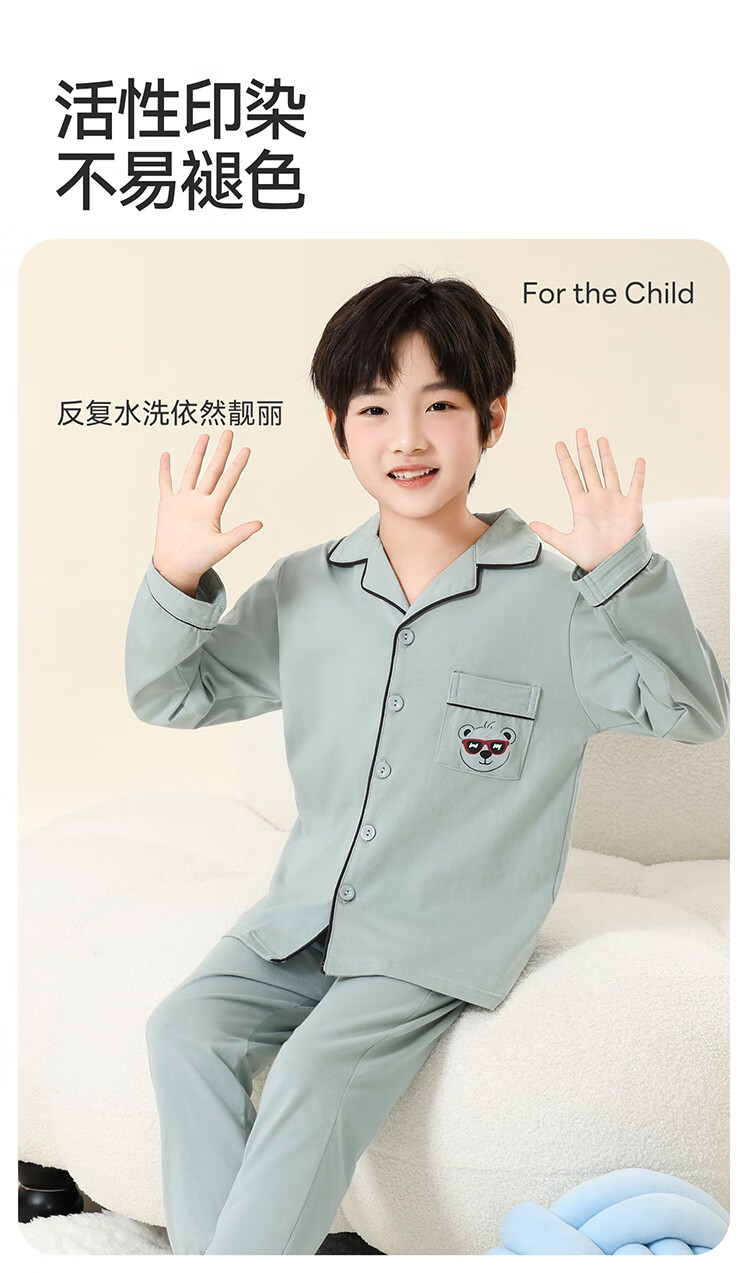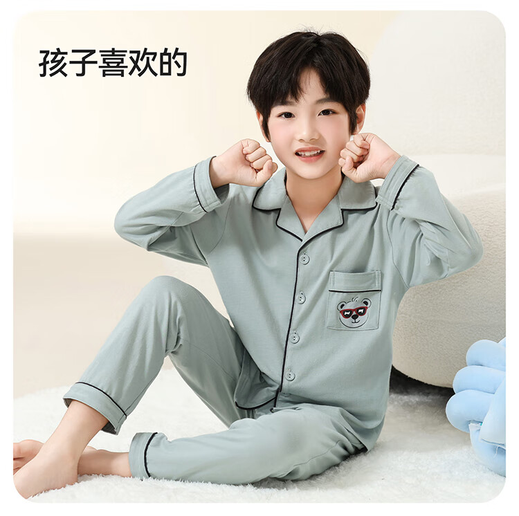 Red Bean Children's Pajamas Spring and Autumn 100% Cotton Antibacterial Breathable Long Sleeve Medium and Large Children's Boys Class A Junior High School Student Home Clothes Set