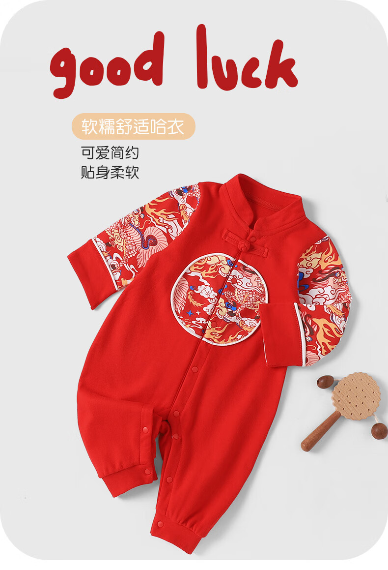 Youqi baby clothes for men and women, spring and autumn jumpsuits for infants and toddlers who are one hundred days old and one hundred days old, new year's greetings dress, haha