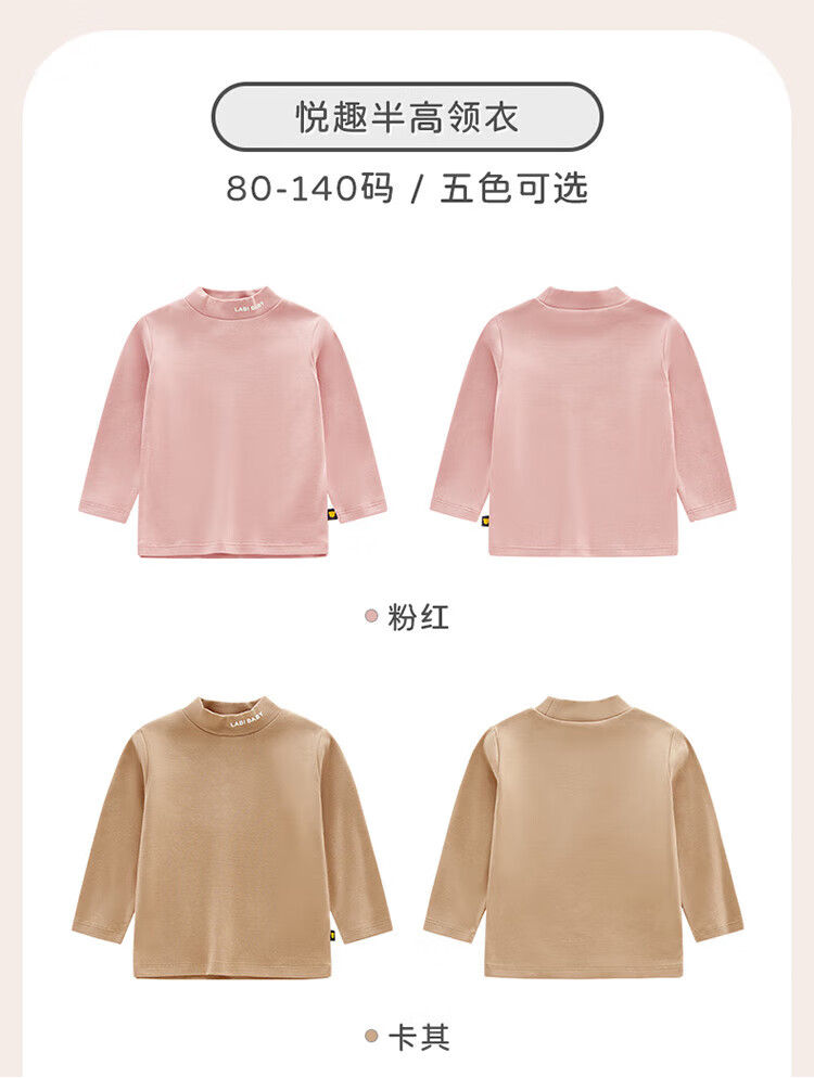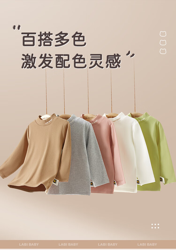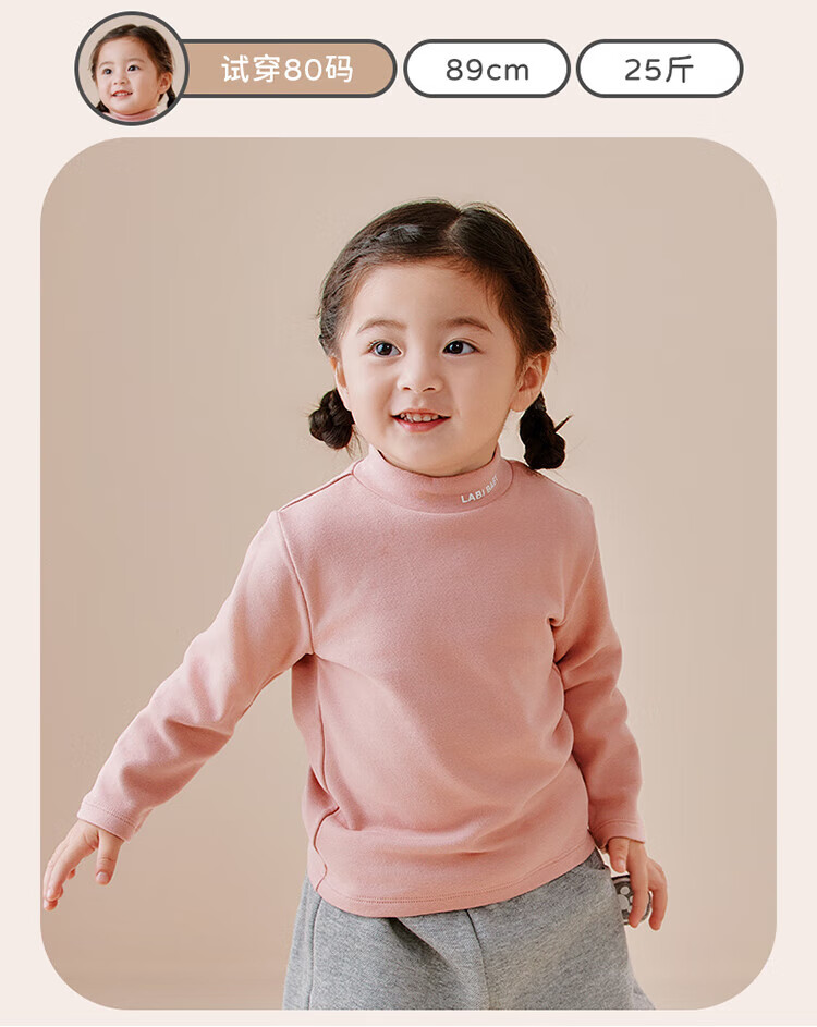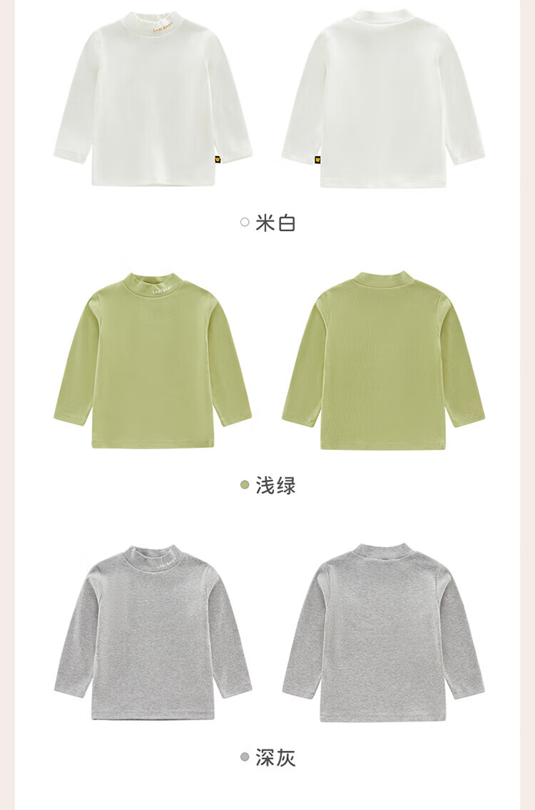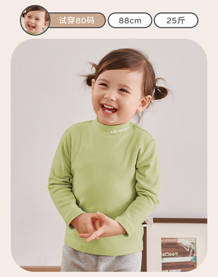 Rabbi children's half turtleneck top autumn and winter warm pullover bottoming shirt long-sleeved top light green 120