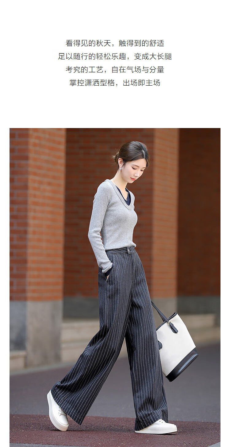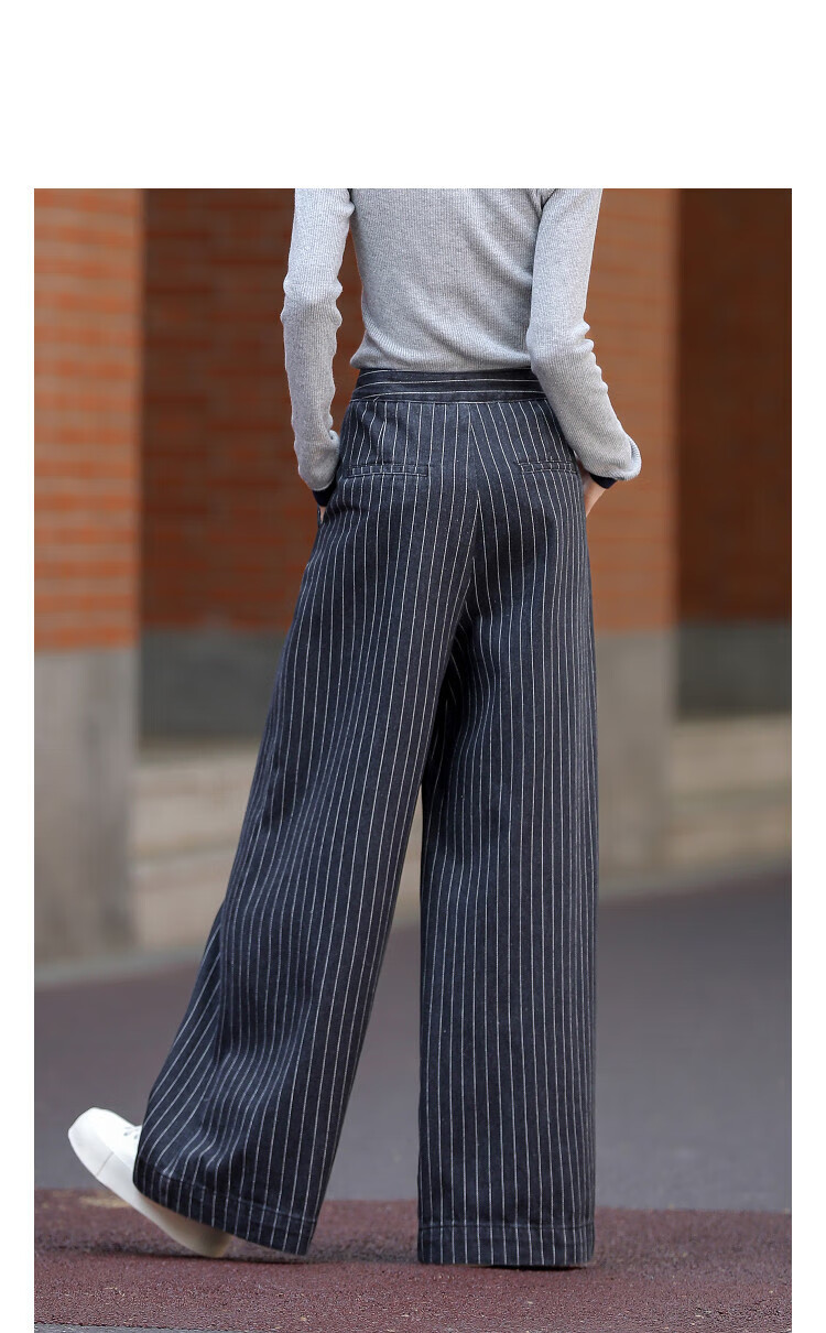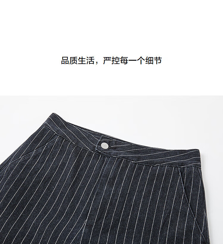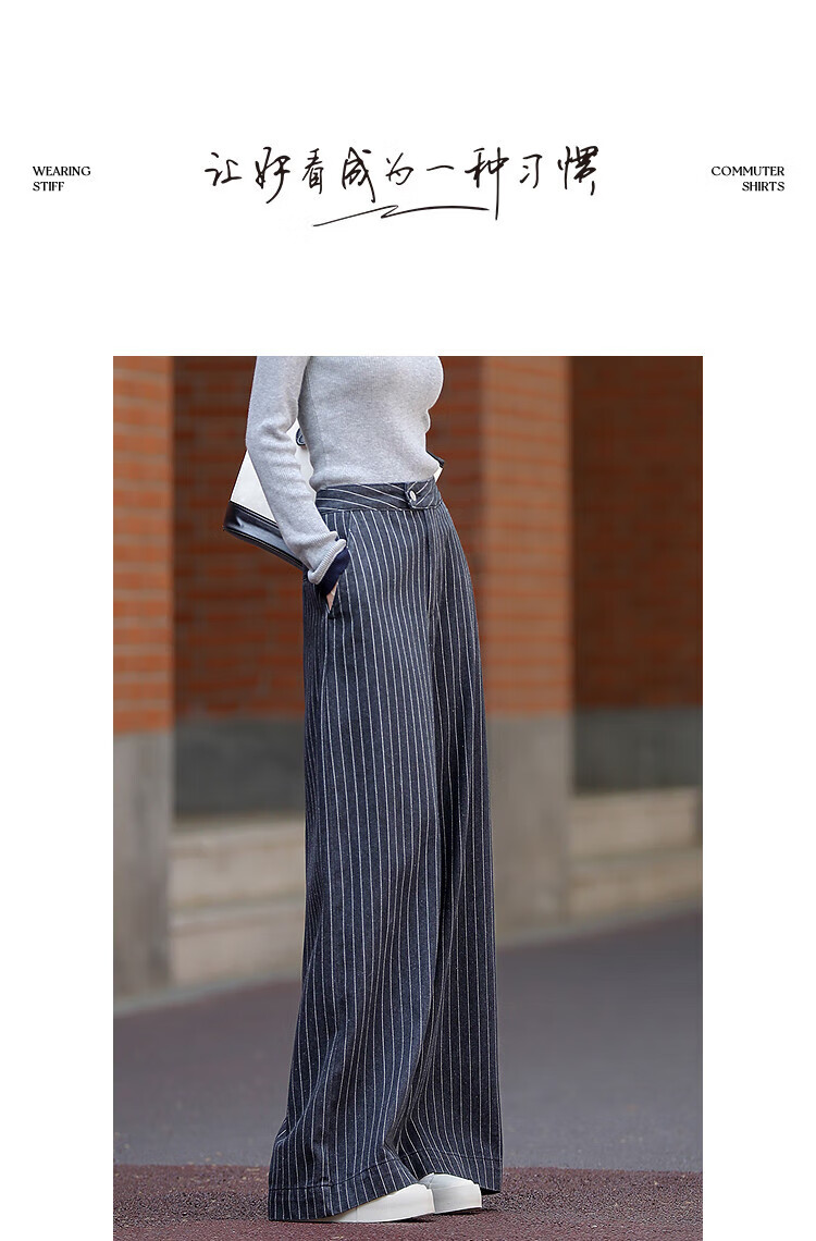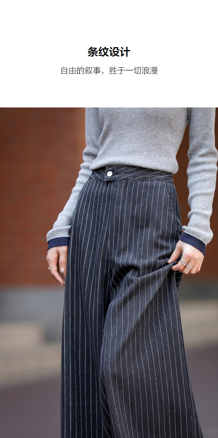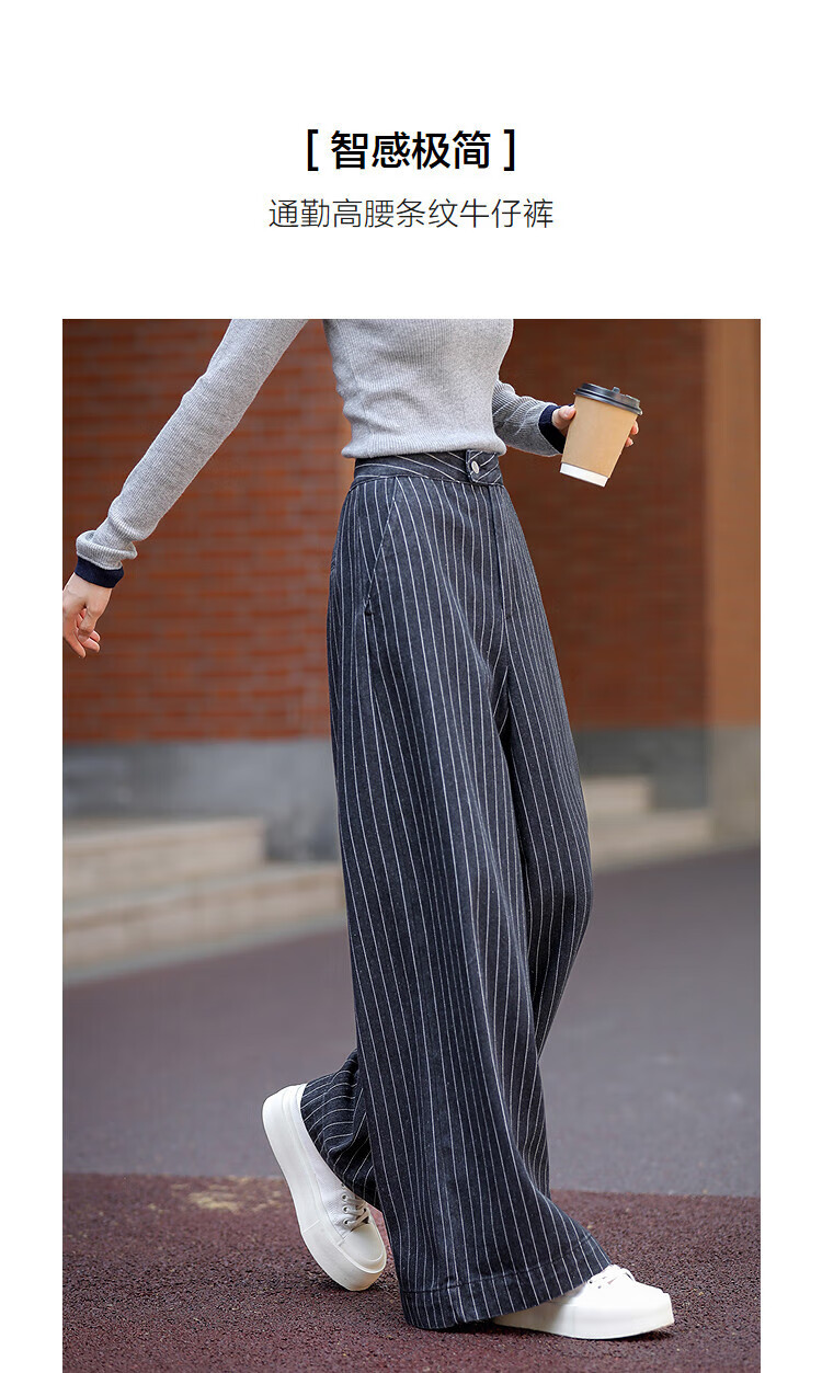 Demana Intelligent Minimalist Autumn Commuting High Waist Retro Striped Straight Tibetan Style Women's Wide Leg Jeans