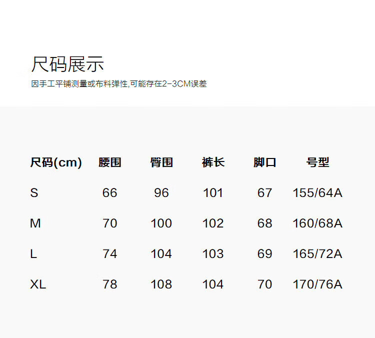 Outseam (cm) 99 cm 101.5 cm 104 cm 106.5 cm 109 cm