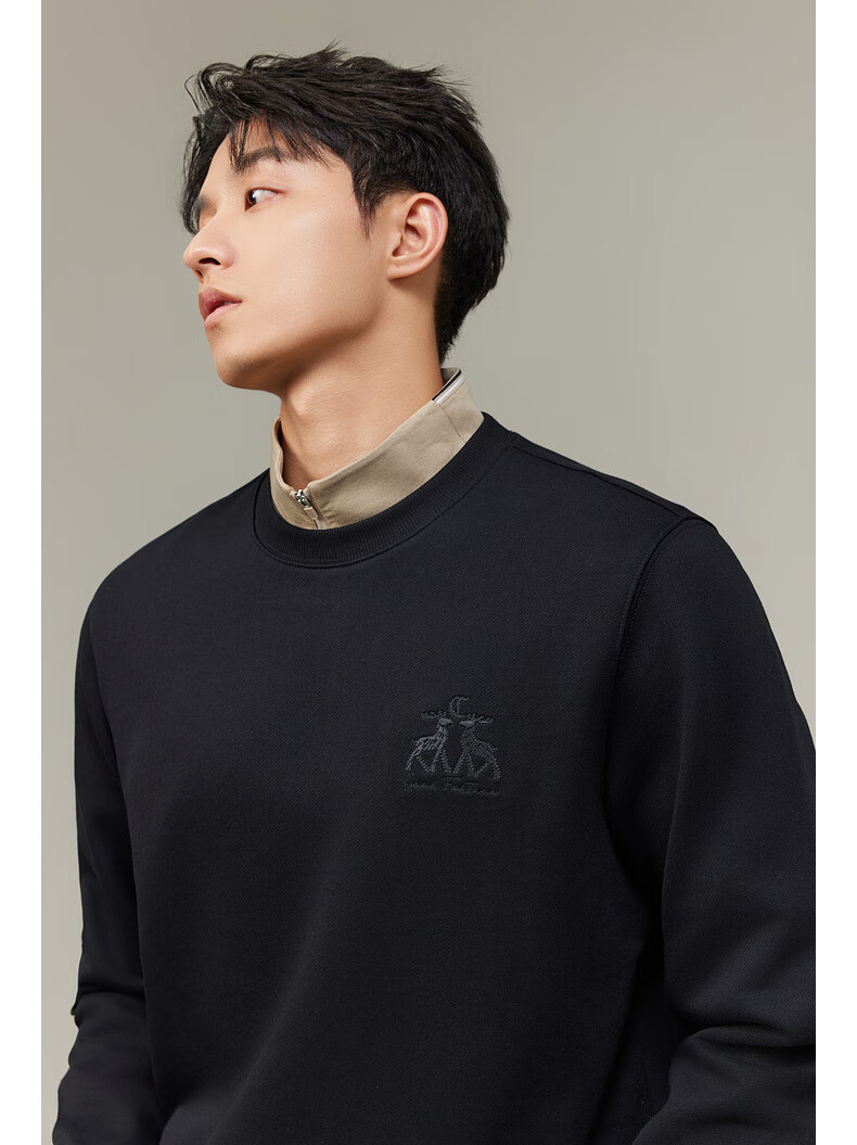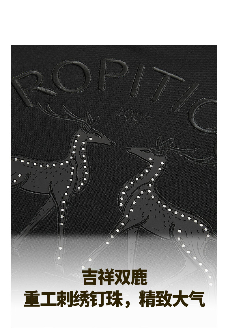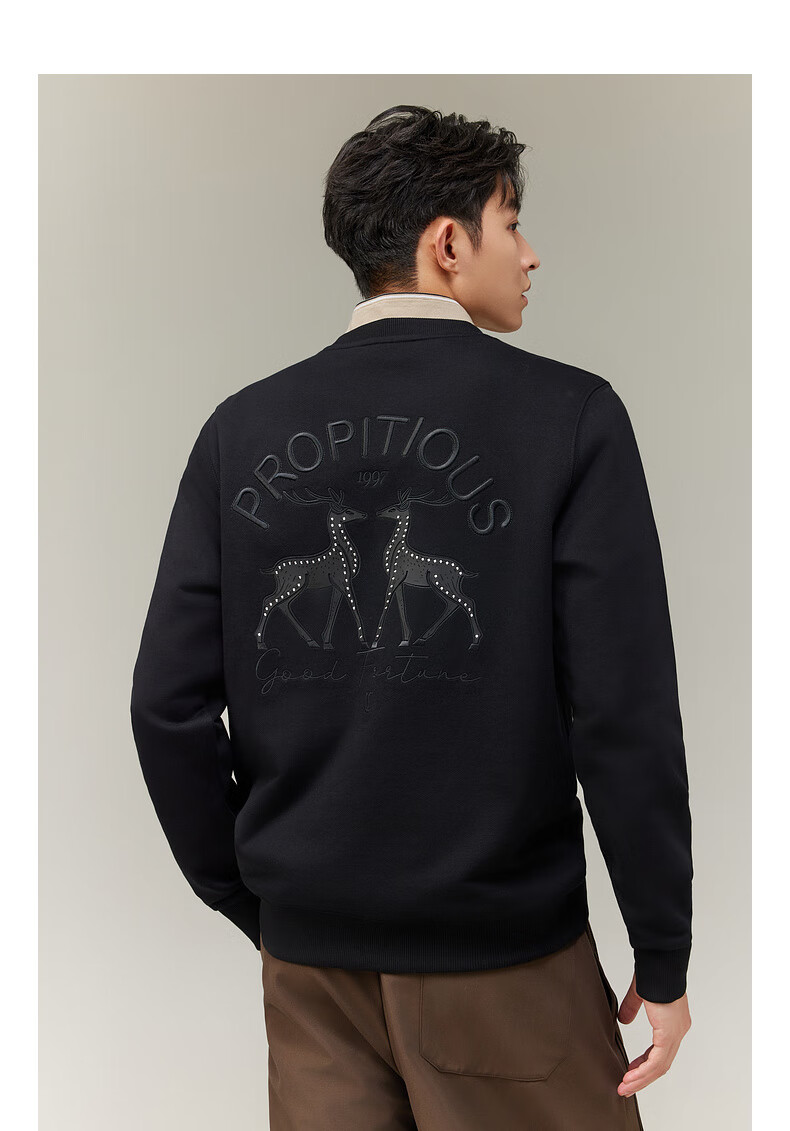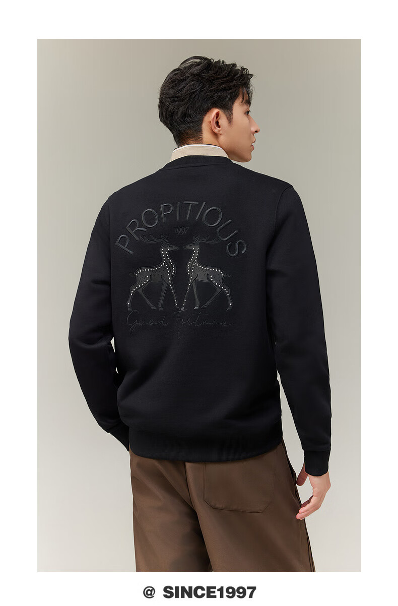 Carbine 365g fish scale cloth sweatshirt for men with double deer beading embroidery design, comfortable and soft winter long-sleeved sweatshirt