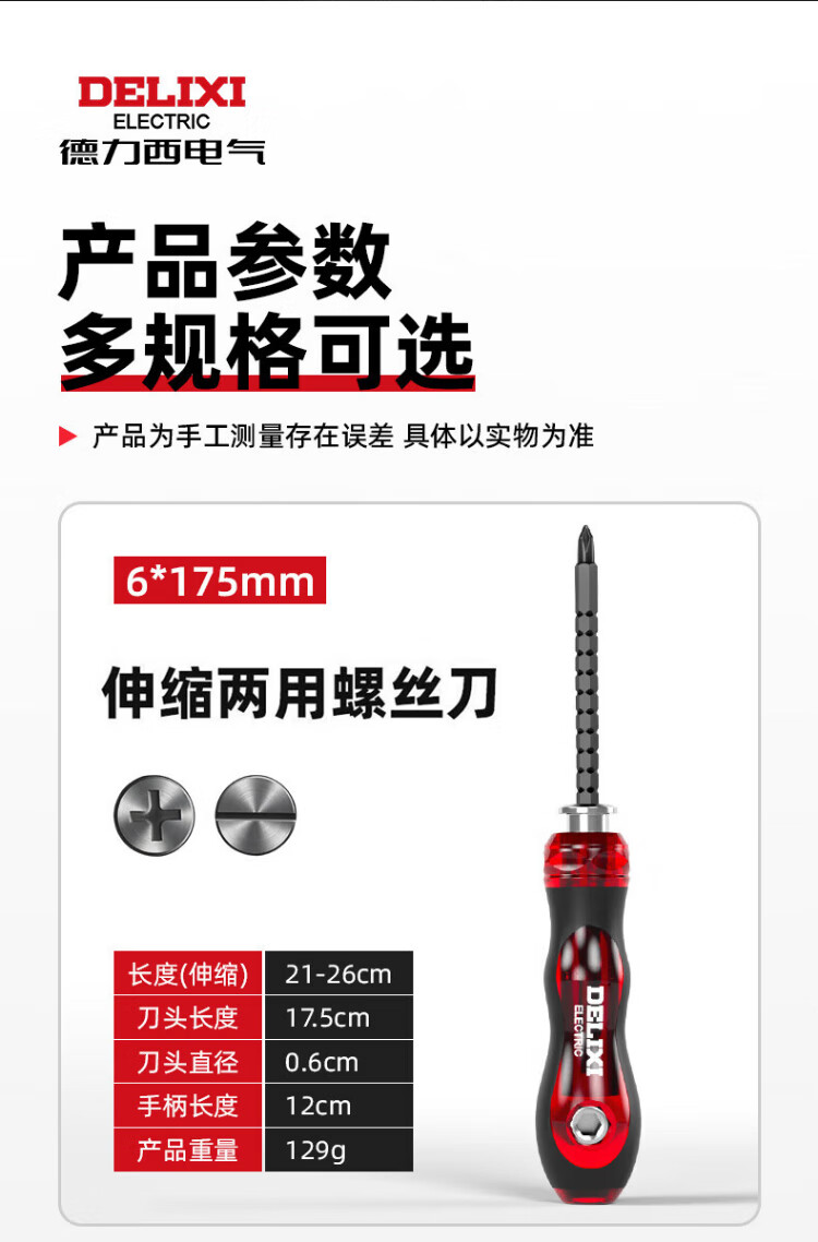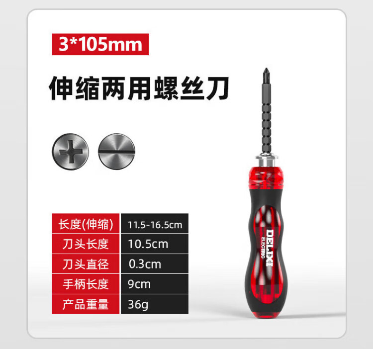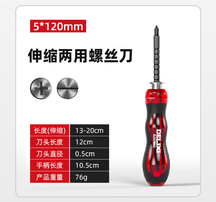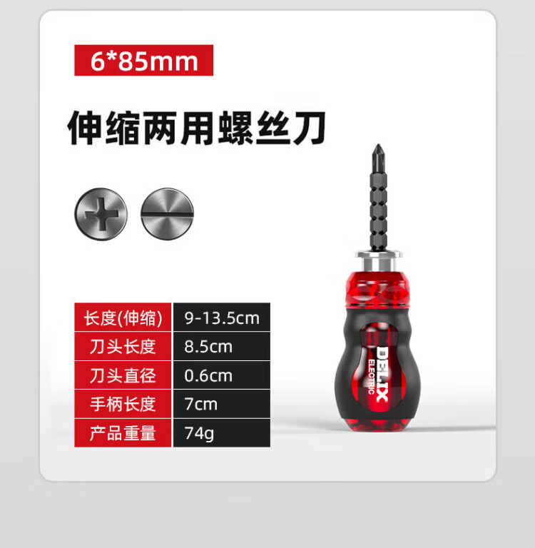 DELIXI ELECTRIC telescopic dual-purpose screwdriver cross-shaped screwdriver multi-functional household disassembly and repair screwdriver 6*85mm