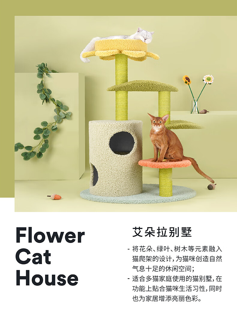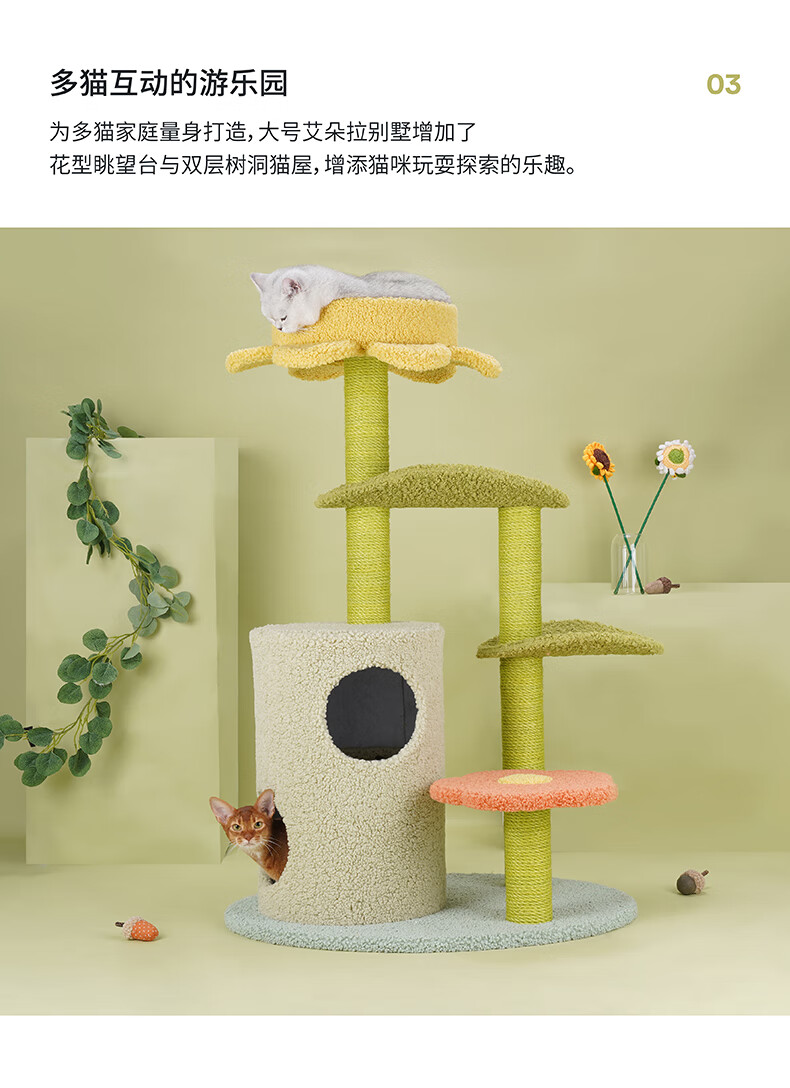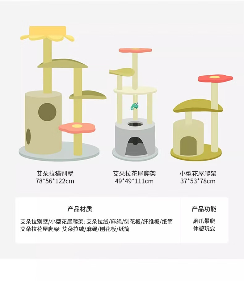 ZEZE Edora Cat Climbing Frame Cat Nest Integrated Cat Rack Grinding Claw Cat Scratching Post Jumping Platform Toy Small Cat Tree Multi-layer Wear-Resistant 120cm 5-layer Villa Model 78*56*122cm