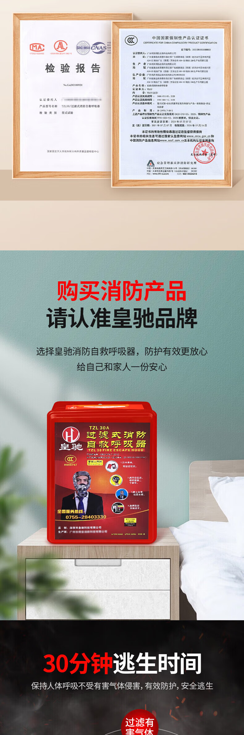 Huangchi gas mask fire mask fire protection smoke mask fire escape filter self-rescue respirator TZL30