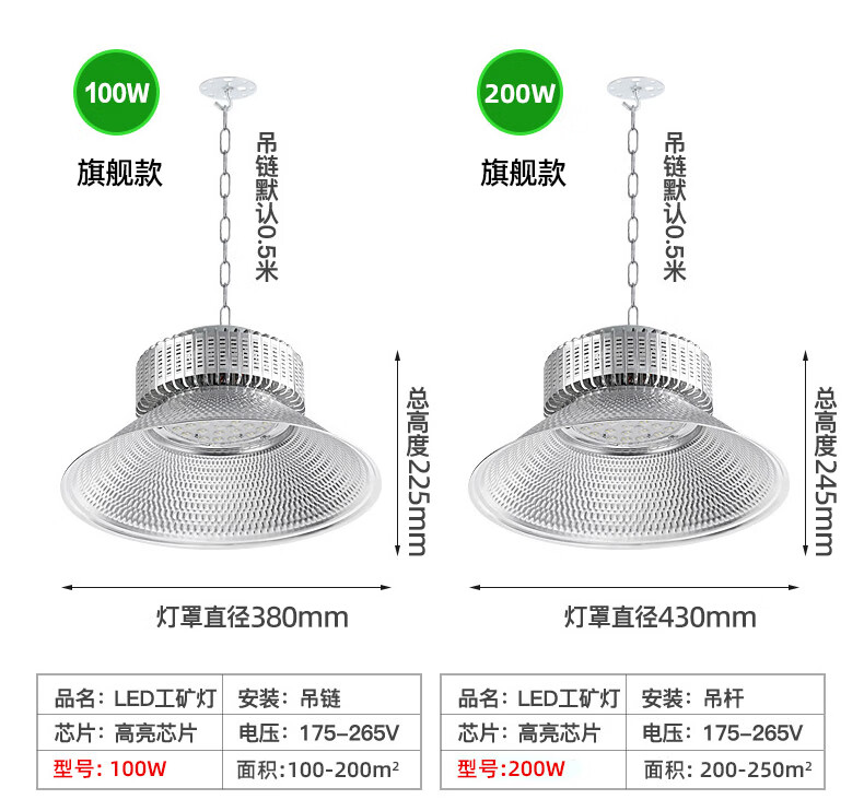 Biuyum led industrial and mining lamp factory lamp factory chandelier workshop lighting lamp warehouse lamp high power hanging chain industrial lamp 300w white light