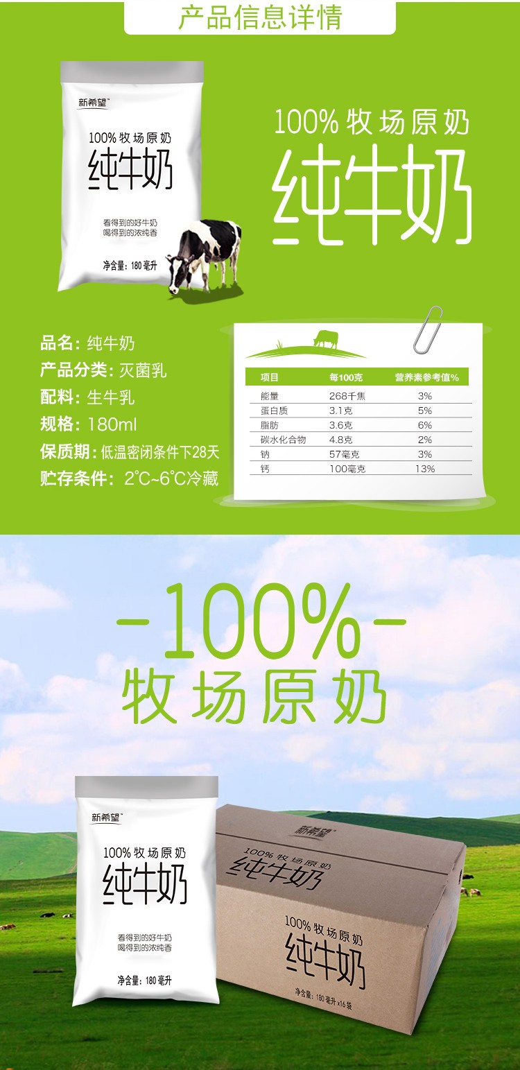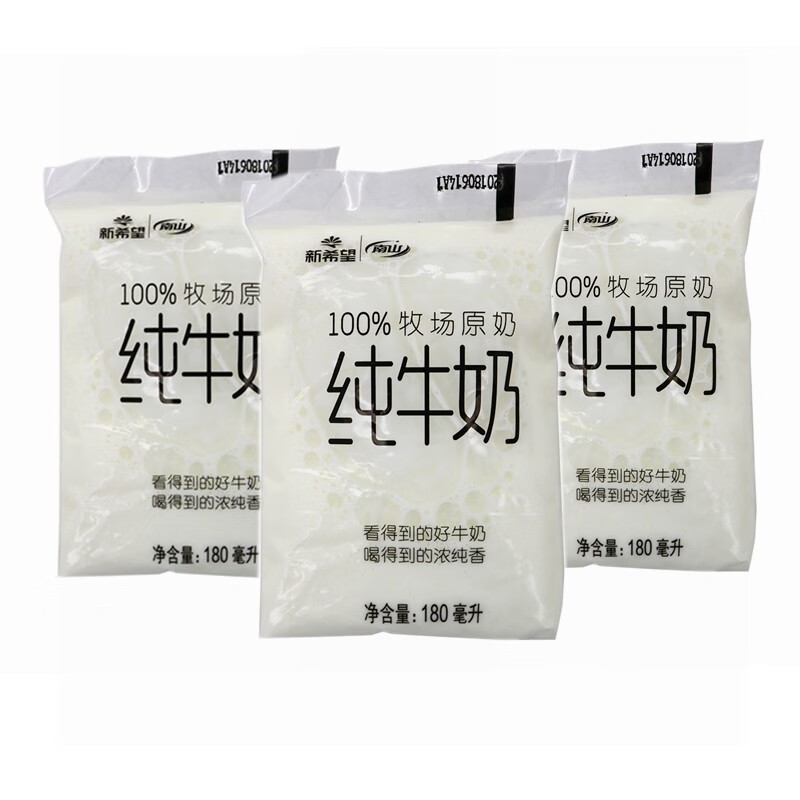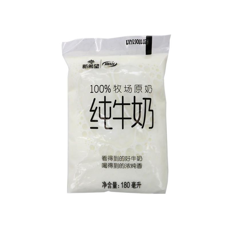 New Hope Nanshan Pure Milk Transparent Bag Internet Celebrity Xiaobai Bag Full-fat Pure Milk 180ml*12 Bags Children's Nutritional Breakfast Milk New Hope Pure Milk 12 Bags
