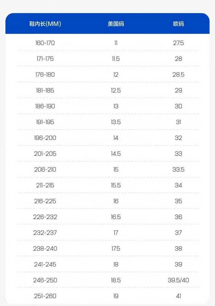 China (cm) 36 - 37 38 - 39 40 - 42 43 - 44 45 - 47