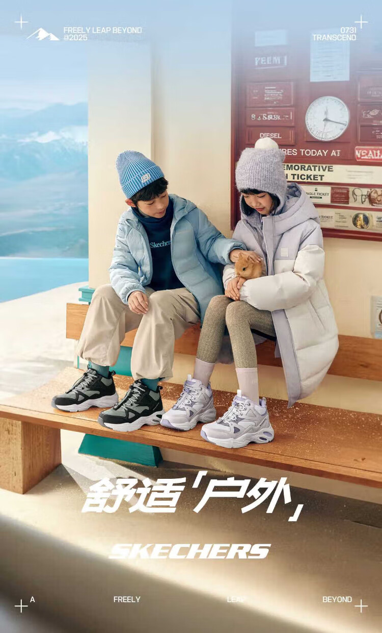 Skechers Skechers meteor velvet boots children's plus velvet warm mid-cut boots girls anti-slip boots 405328L
