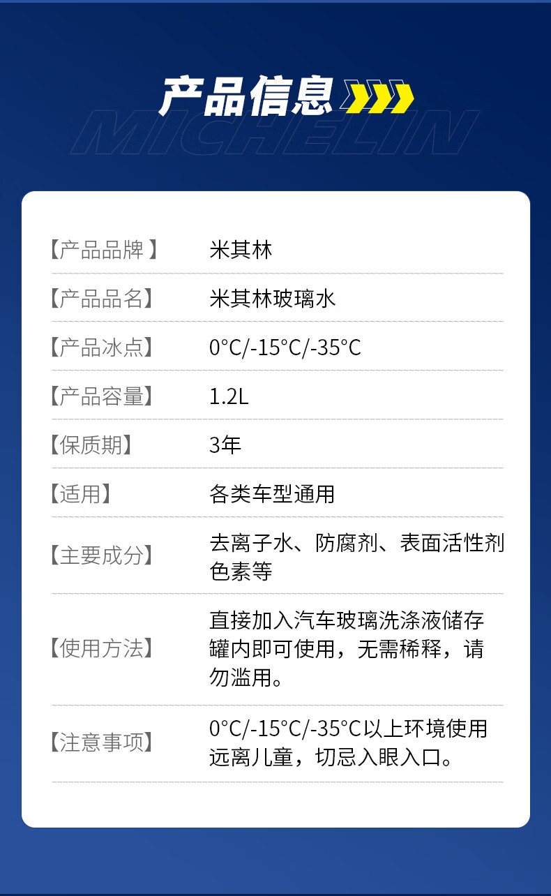 MICHELIN car glass water antifreeze-15 decontamination wiper water winter Volkswagen Audi BMW universal 1.2L*2 bottles