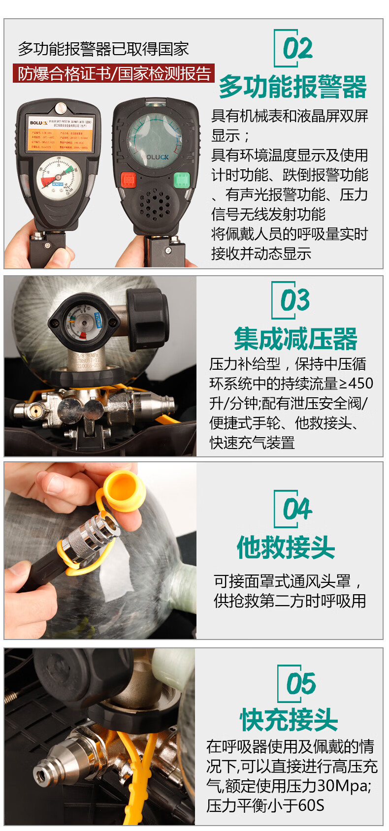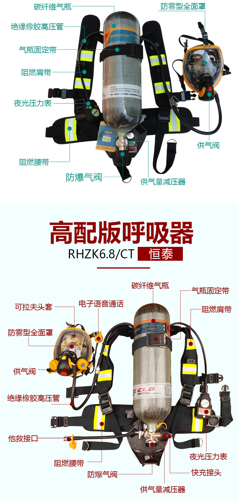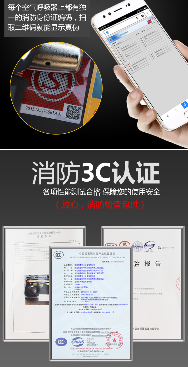 RHZKF6.8l/30 positive pressure air respirator self-priming portable firefighting 3C carbon fiber mask 6L cylinder escape smoke mask 6L cylinder respirator (test report with box)