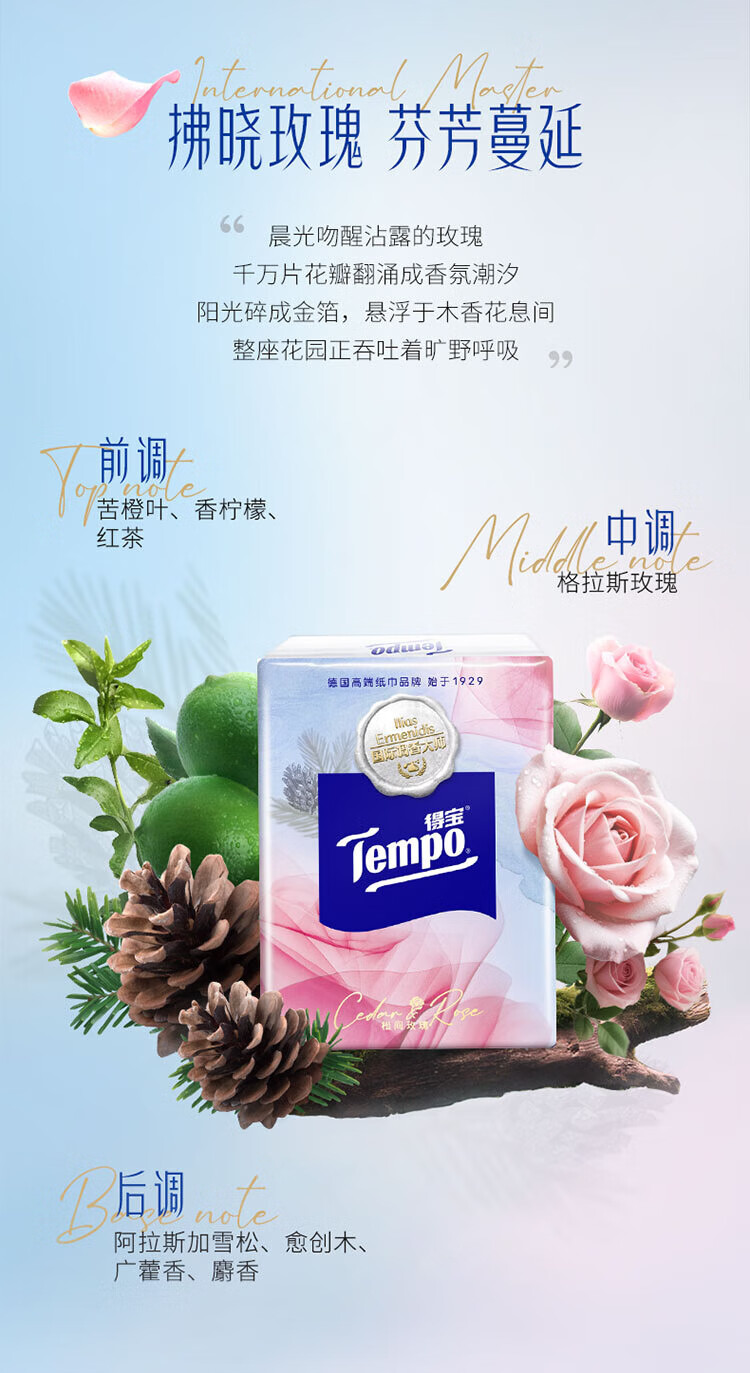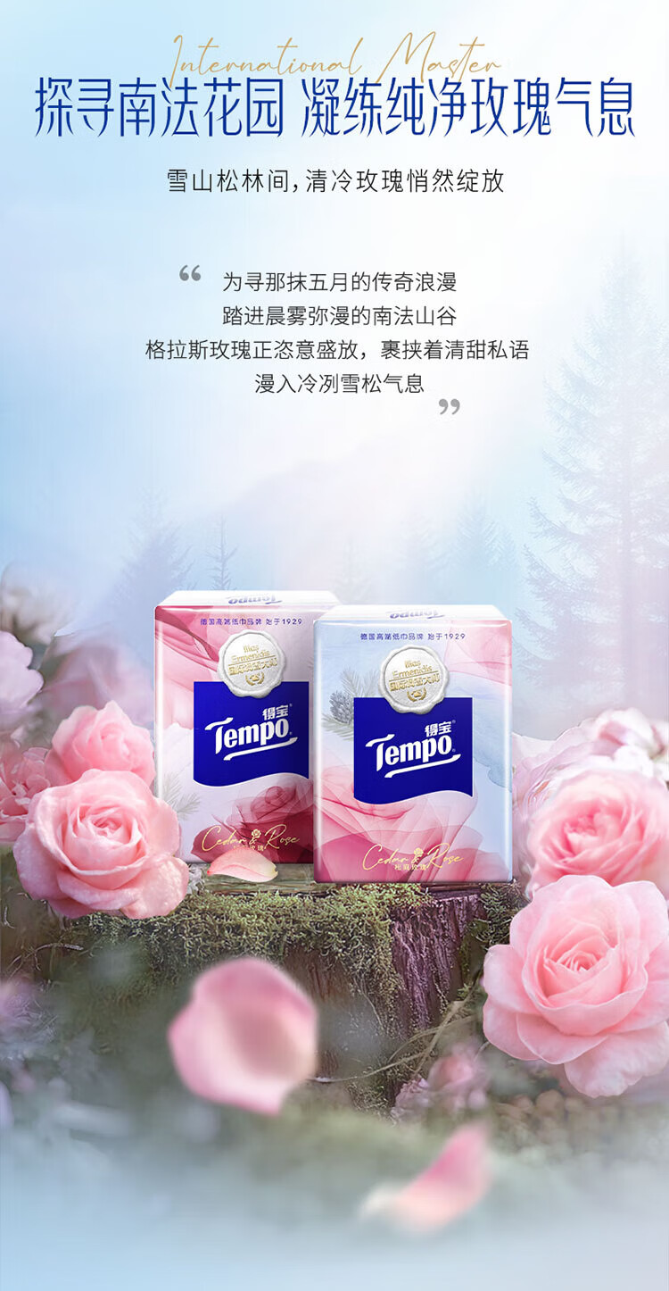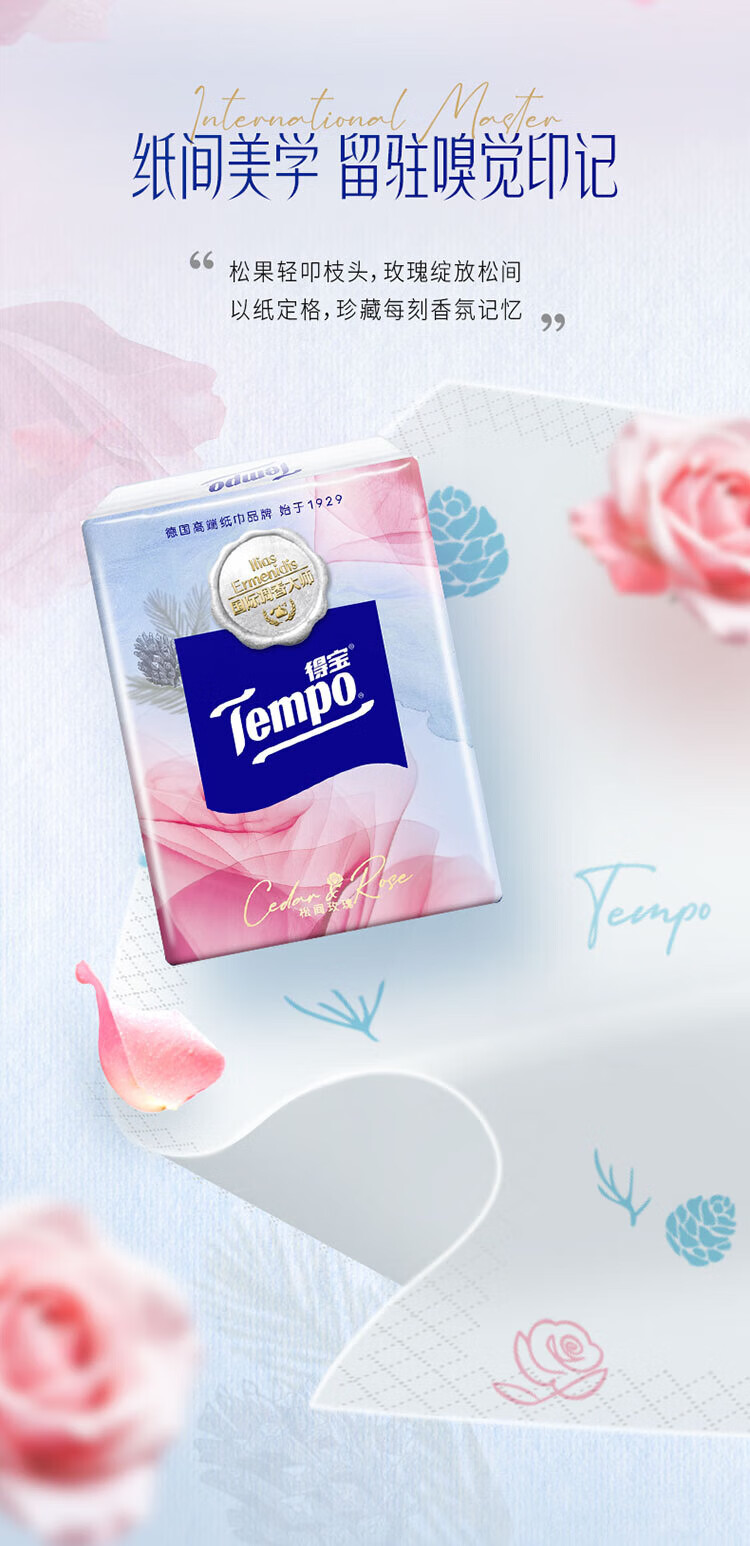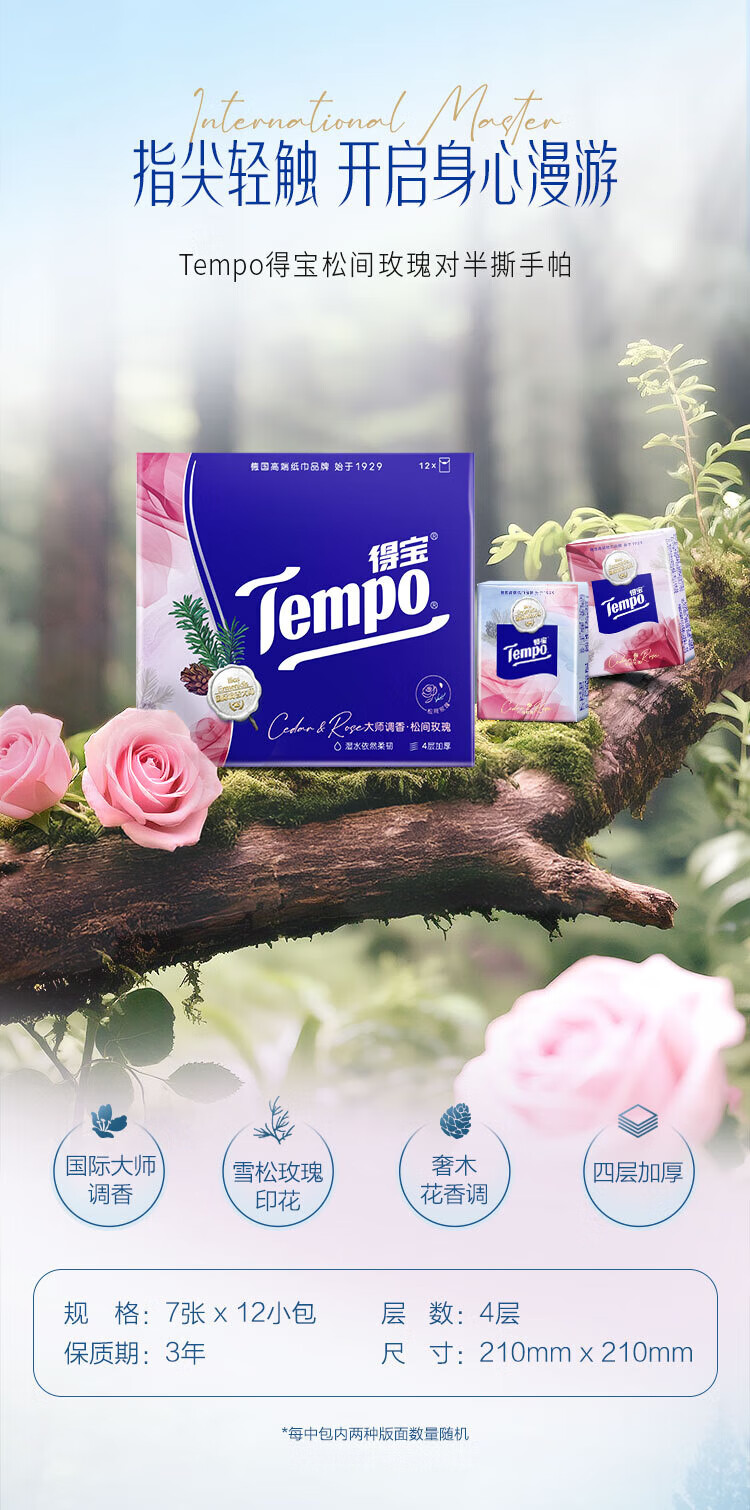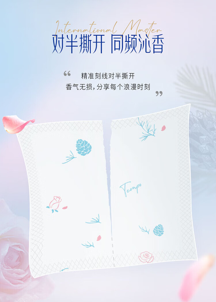 TEMPO Chinese Valentine's Day limited edition Pine Rose printed engraved handkerchief paper 7 sheets * 12 packs, torn in half, tissue paper small pack