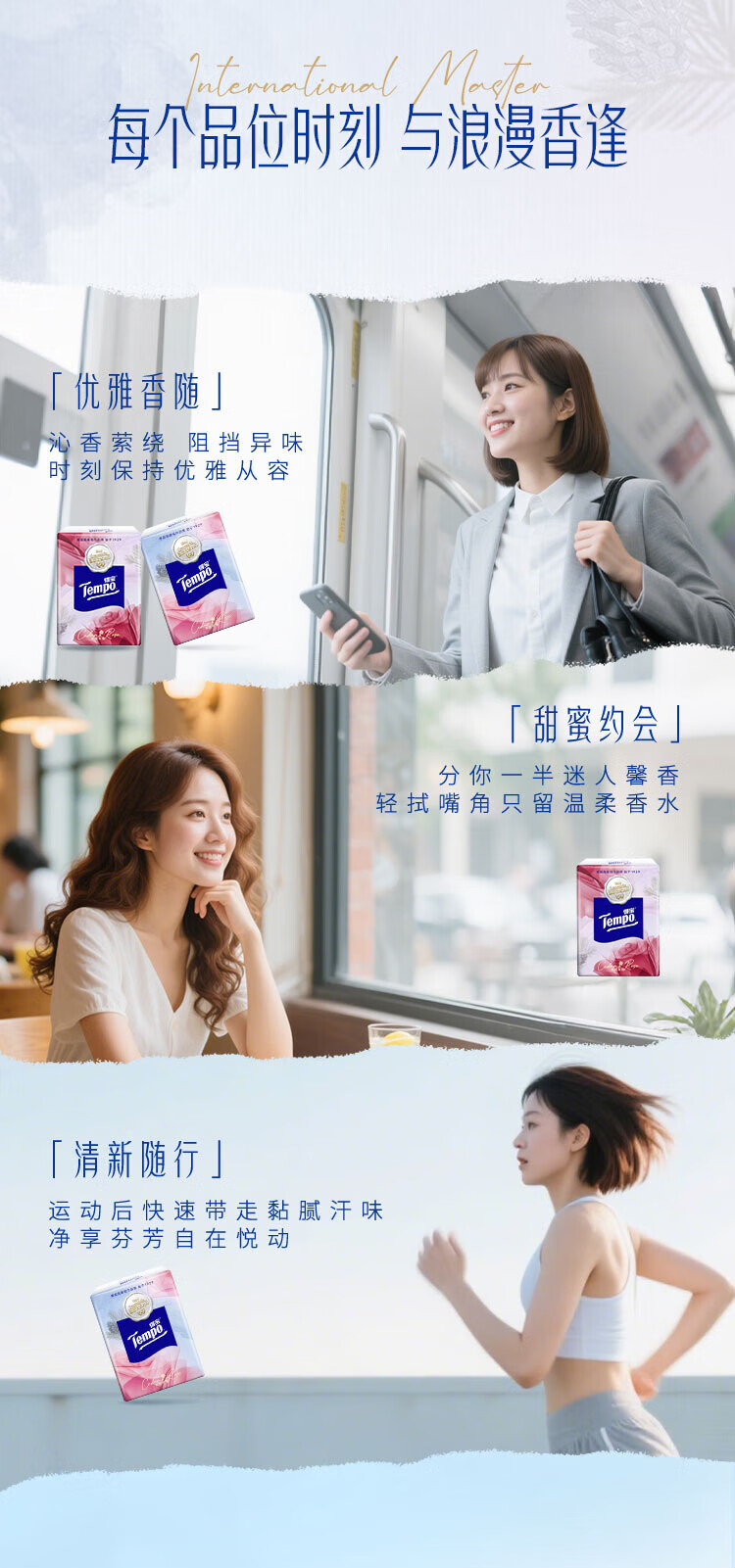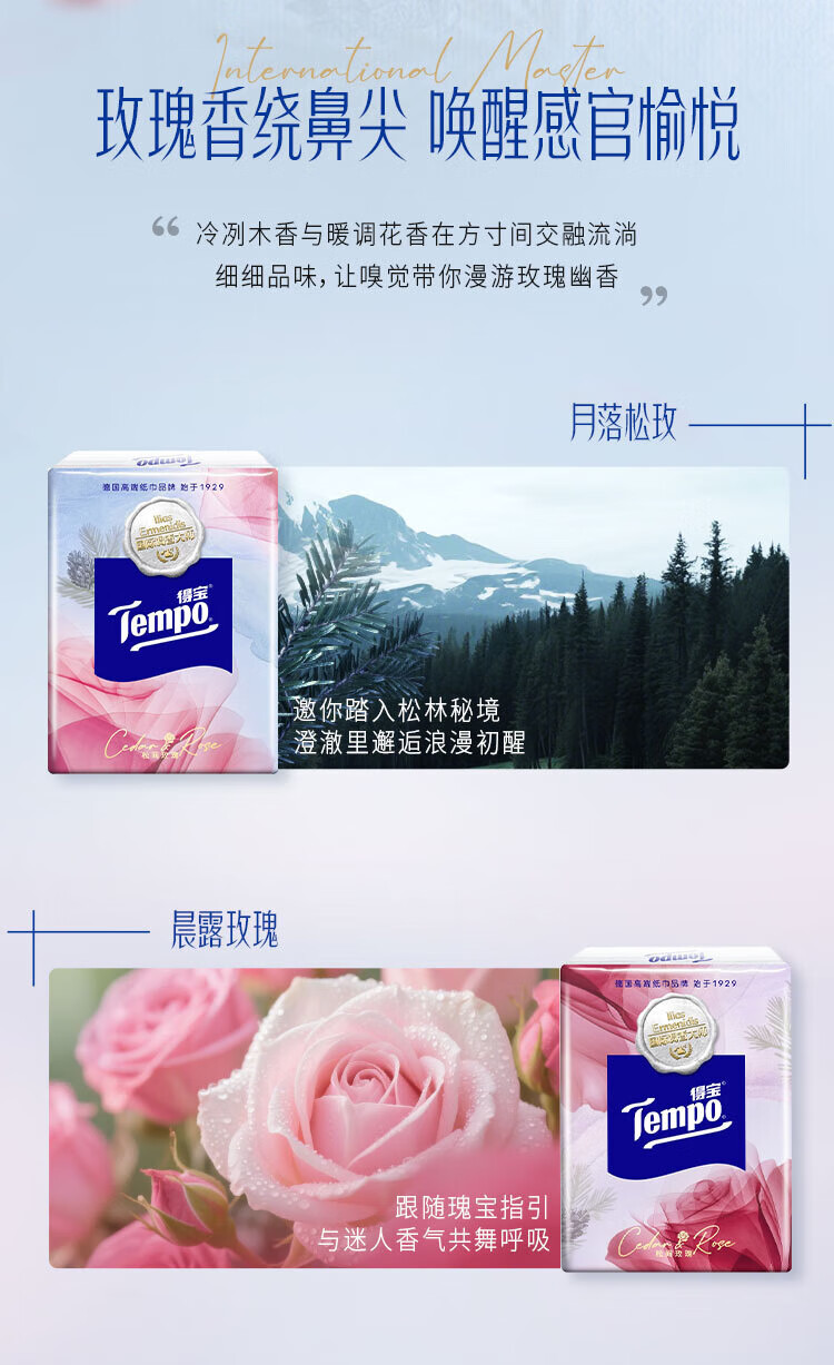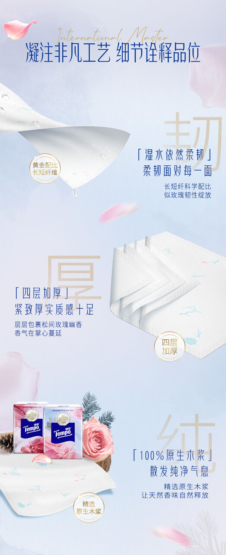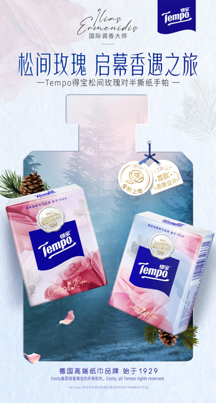 TEMPO Chinese Valentine's Day limited edition Pine Rose printed engraved handkerchief paper 7 sheets * 12 packs, torn in half, tissue paper small pack
