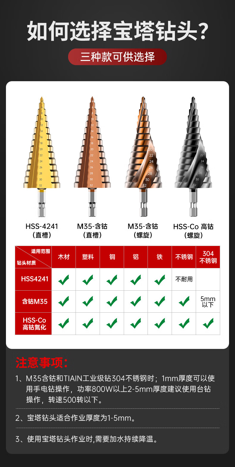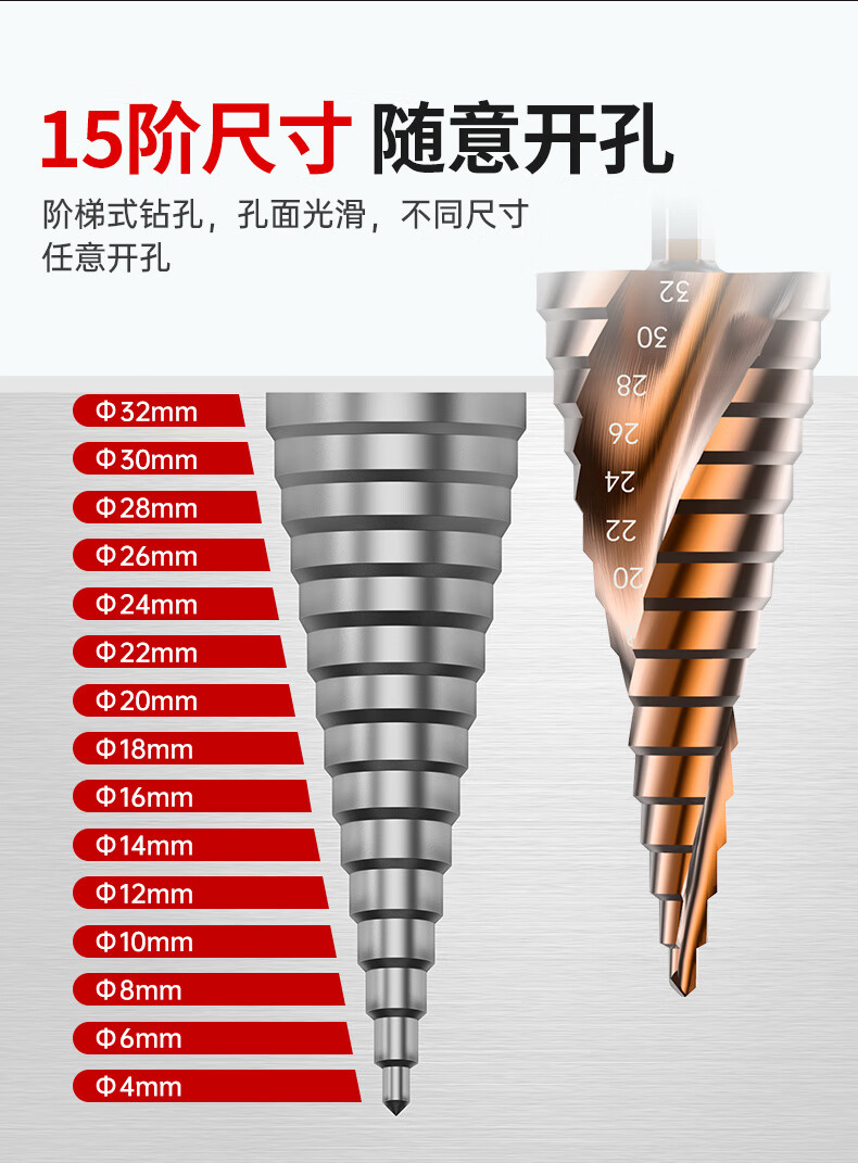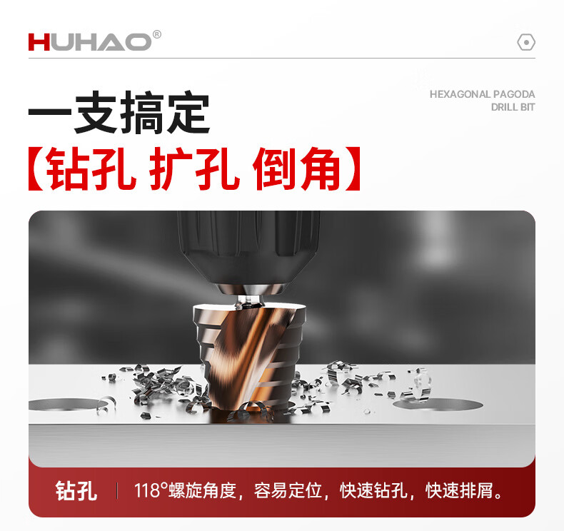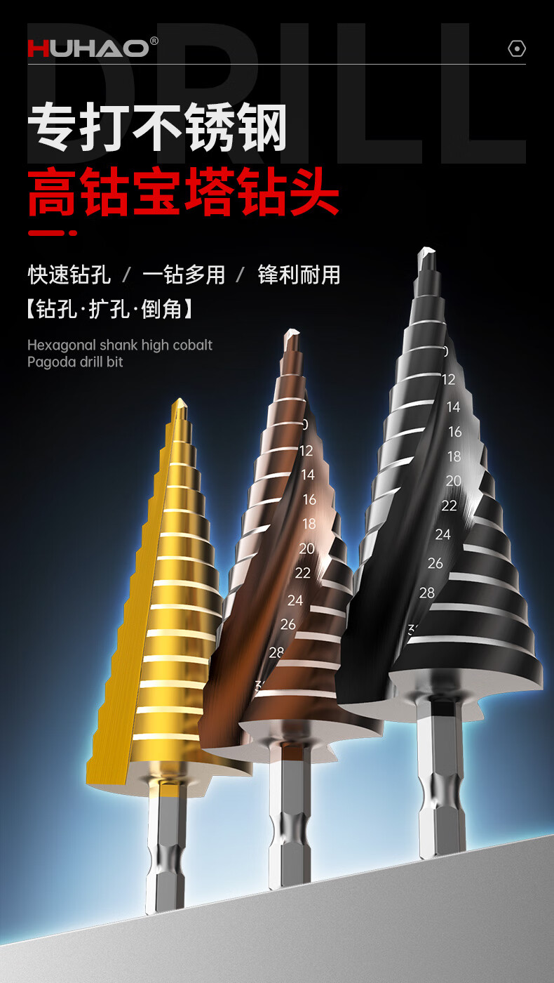 HUHAO hexagonal handle pagoda drill bit high hardness iron plate stainless steel special electric drill drilling step drill bit hole opening expander