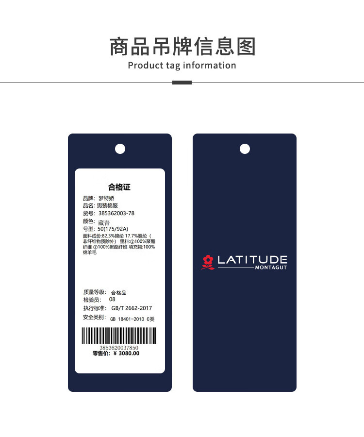 MONTAGUT men's cotton-padded coat in winter, sheep wool warm and soft, comfortable, simple and versatile, stand-up collar cotton coat, navy 2XL