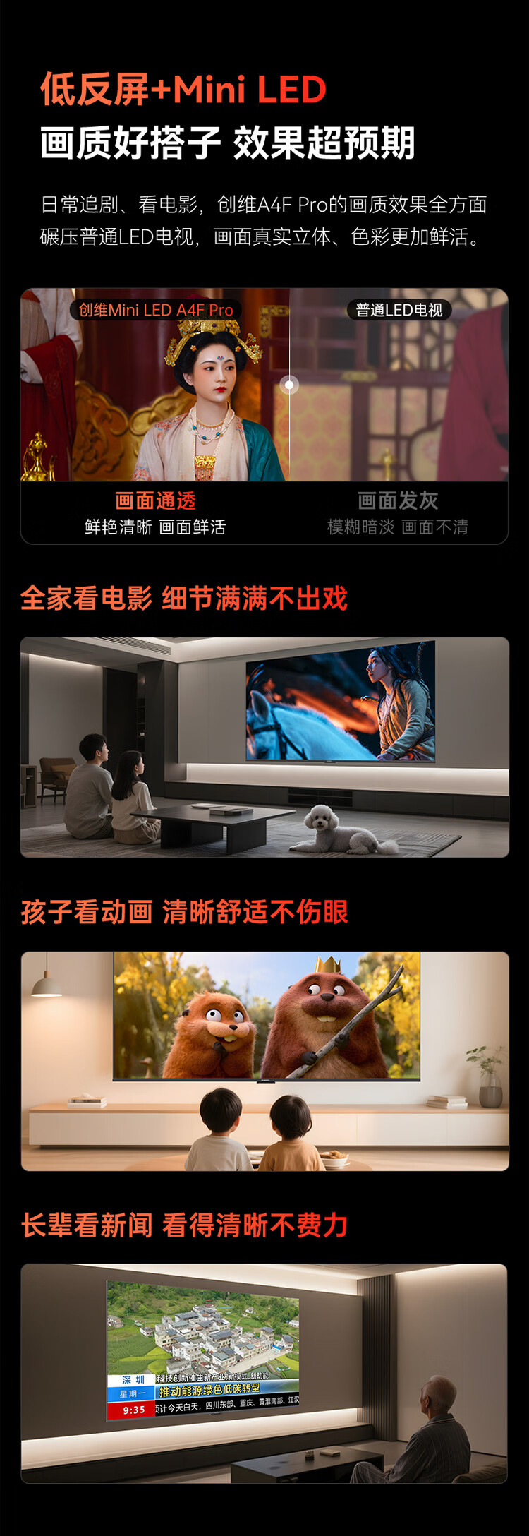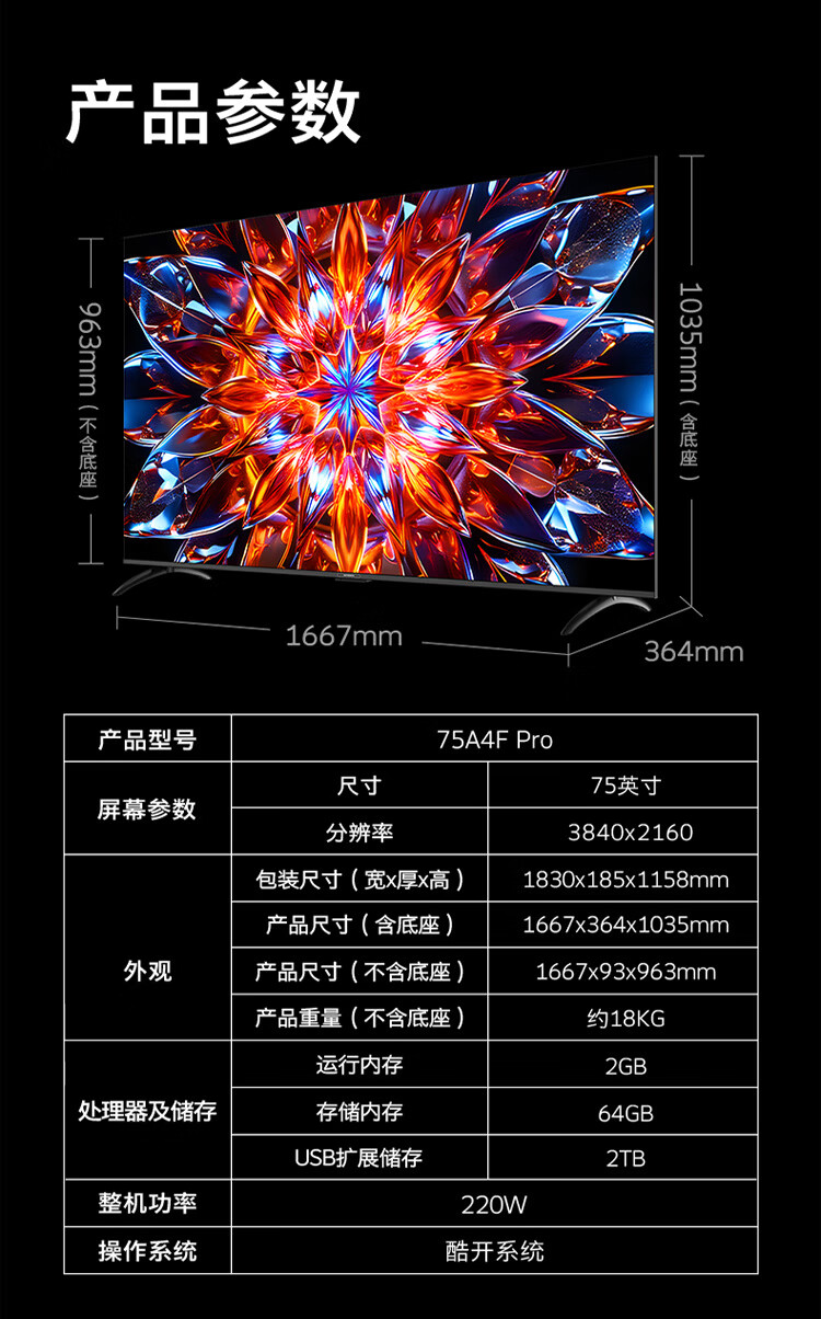 Skyworth TV 75A4F Pro 75-inch TV mini led low reflection screen 4+64G national subsidy first level energy efficiency LCD tablet game A4F upgrade