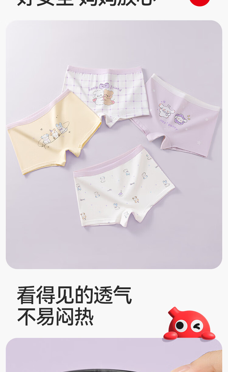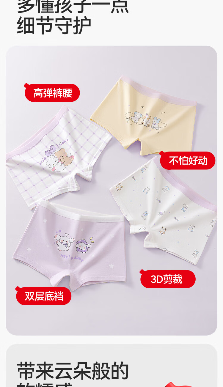 Red bean children's underwear girls pure cotton bottom class A comfortable breathable 10A antibacterial boxer briefs girls development period underwear