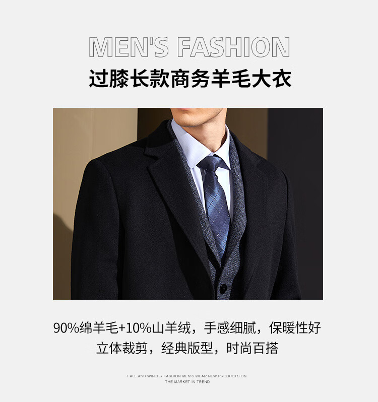 Antonio cashmere + wool men's high-end coat knee-length business casual cashmere wool woolen coat