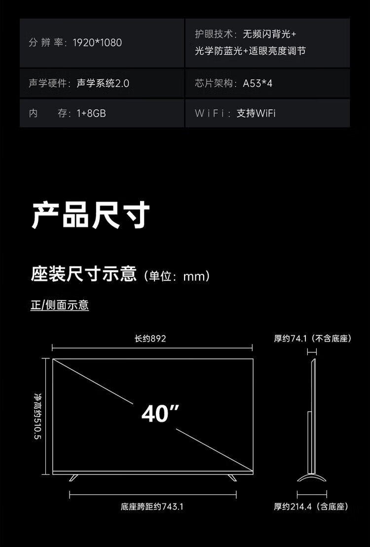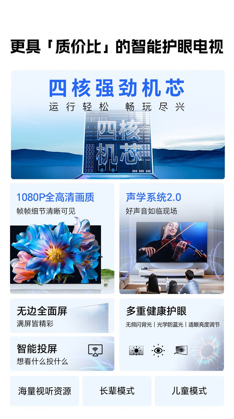 Cool Kaichuangwei K3 2025 40-inch first-class energy efficiency full HD smart eye protection energy-saving ultra-thin full-screen TV game LCD trade-in 40P3F