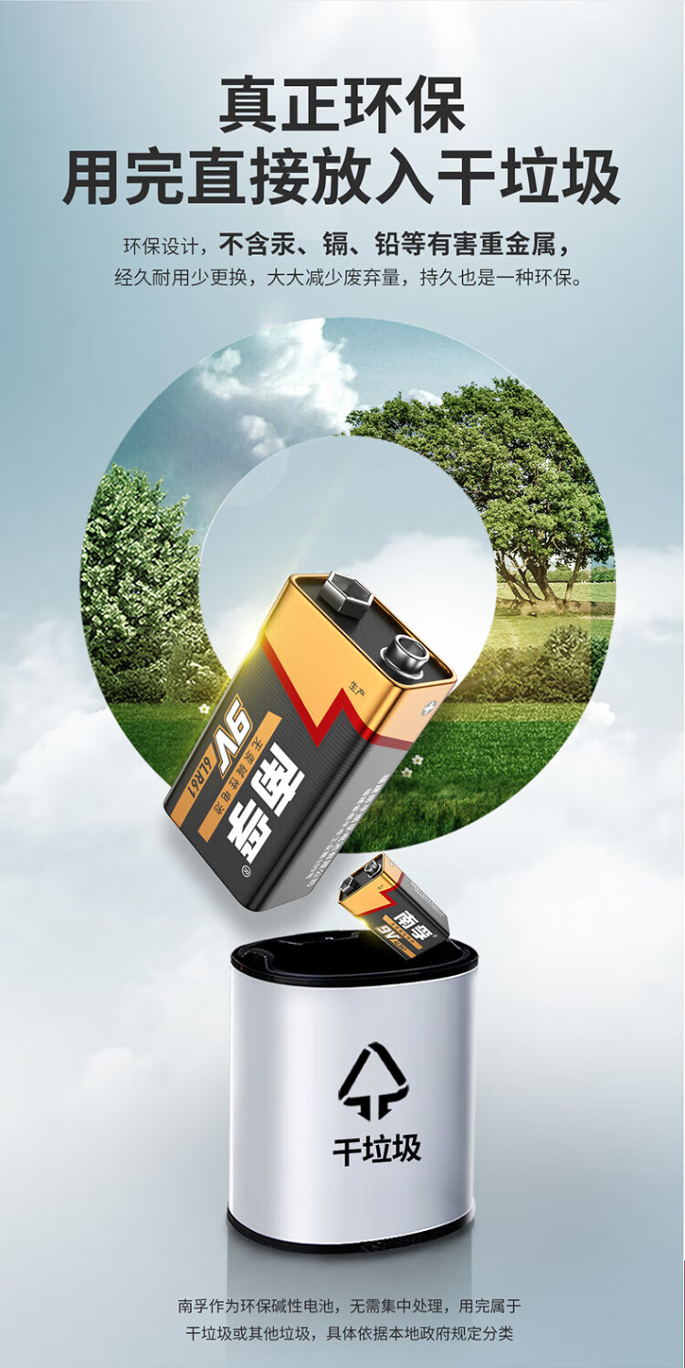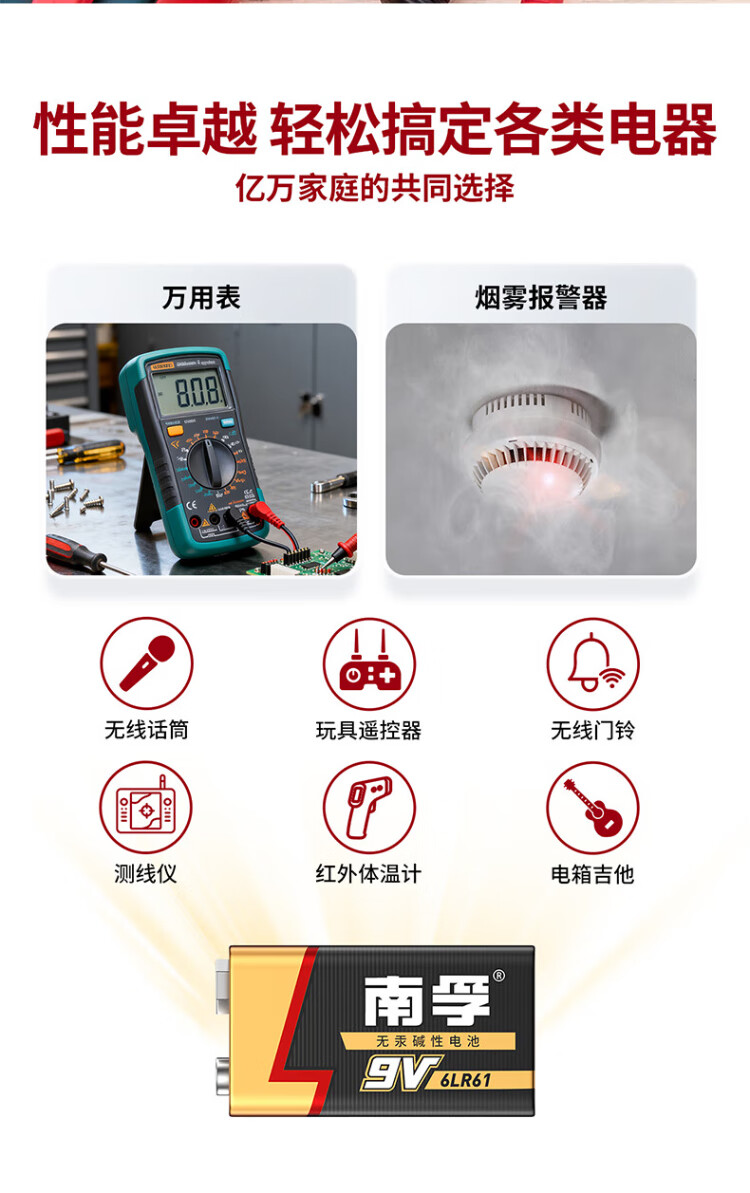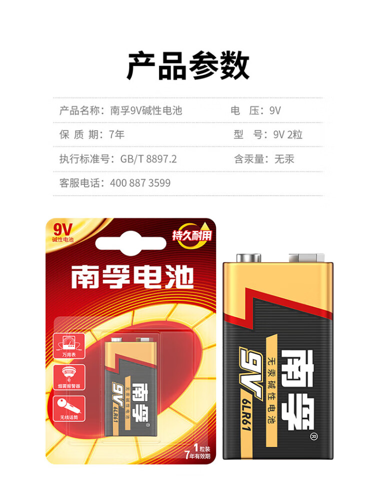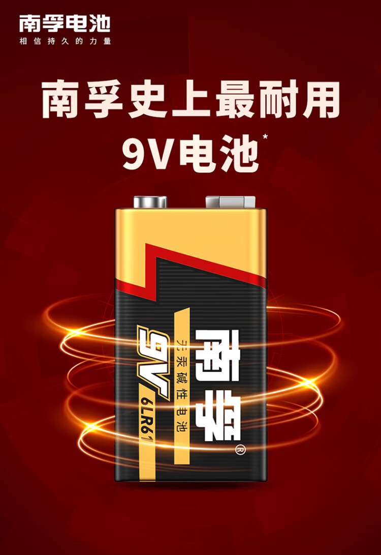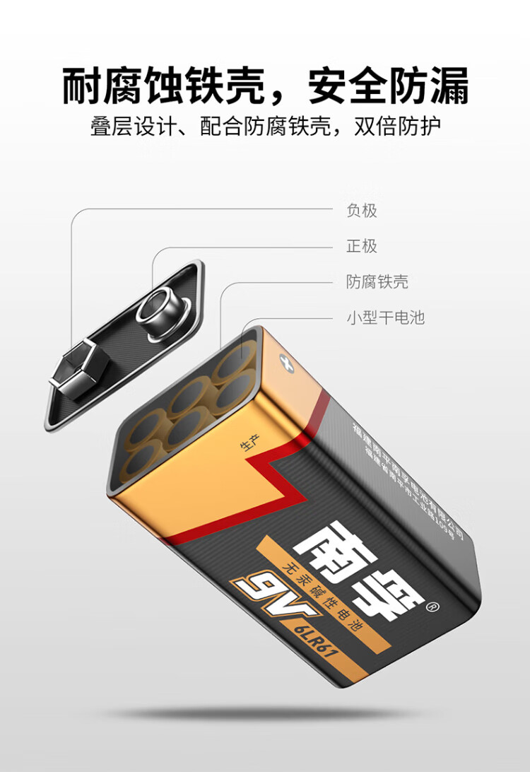 Nanfu 9V alkaline battery 2 pieces 9v suitable for remote control toys/smoke alarms/wireless microphones/multimeters/microphones/remote controls, etc. 6LR61