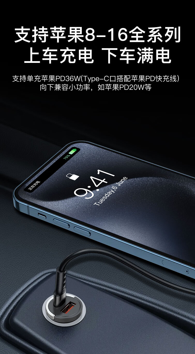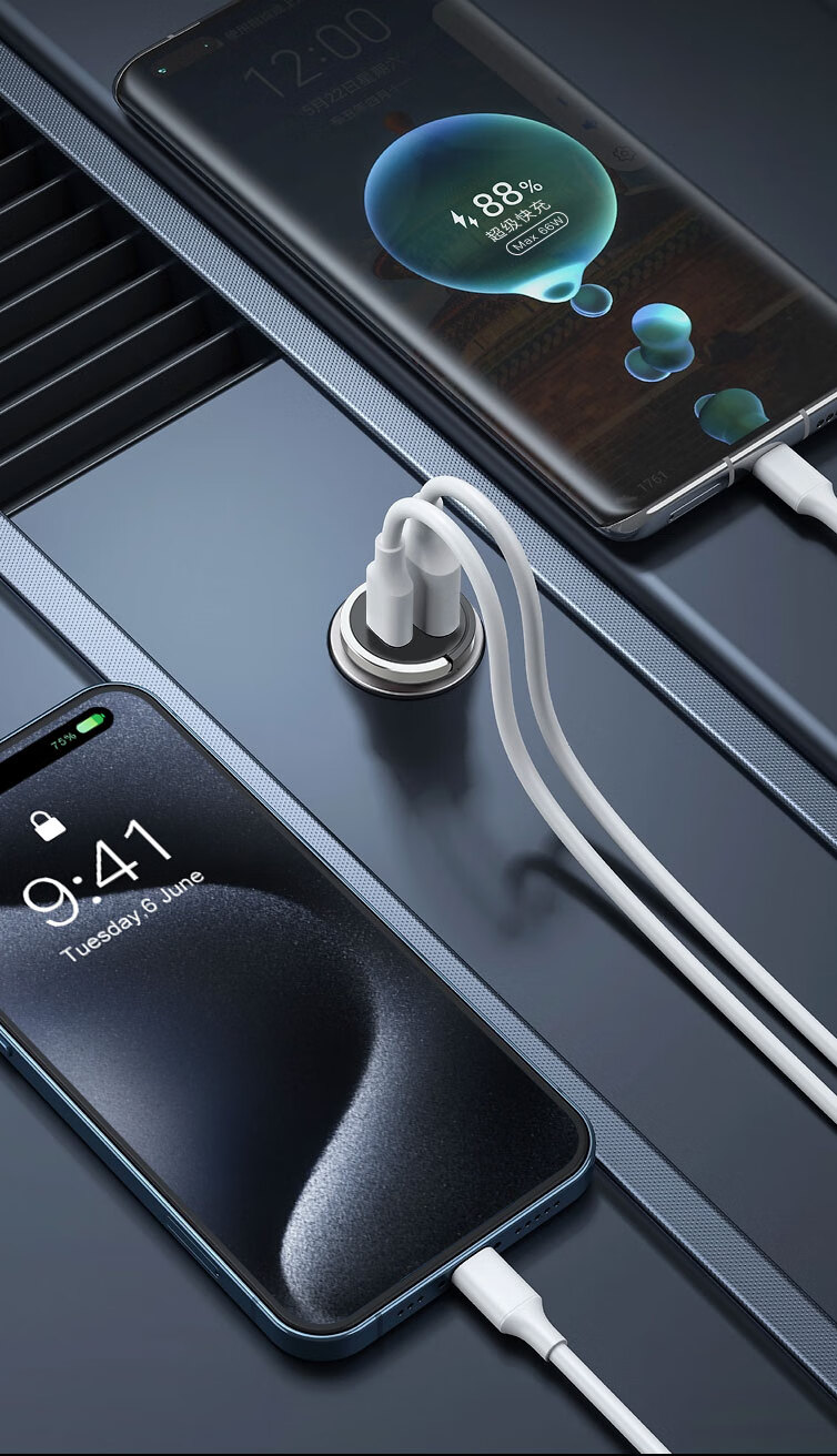 Newman (Newsmy) car charger cigarette lighter car charger super fast charging head one to two converter plug Apple 16 Huawei dual port fast charging hidden PD66W super fast charging
