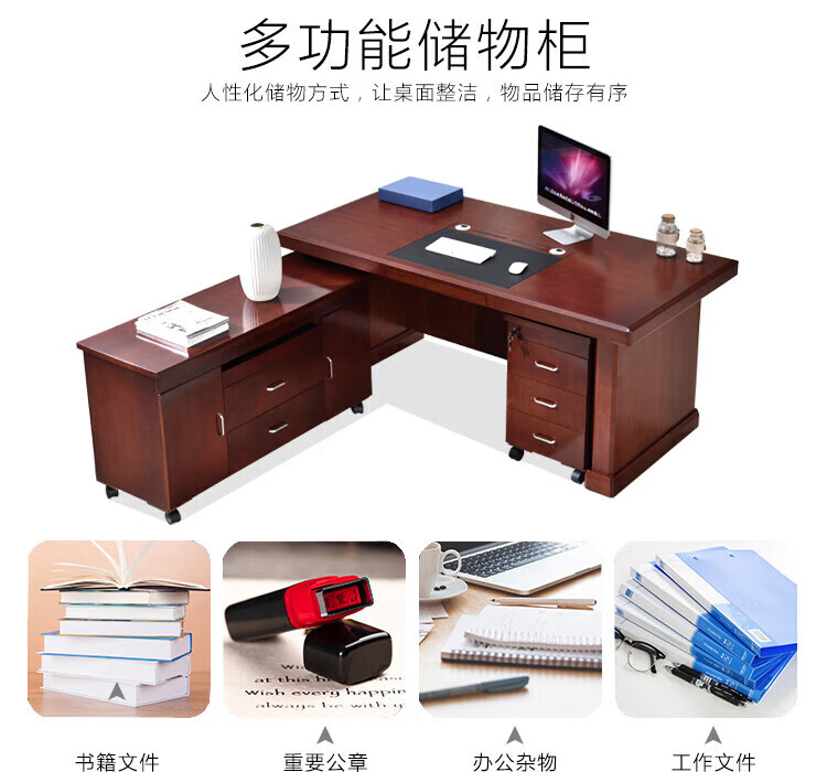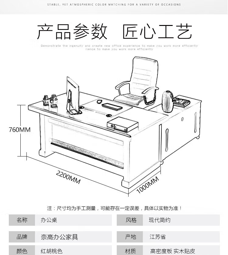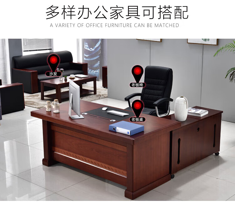NAIGAO boss desk office desk painted with solid wood leather president desk Chinese style leadership executive desk supervisor manager desk 1.6 meters