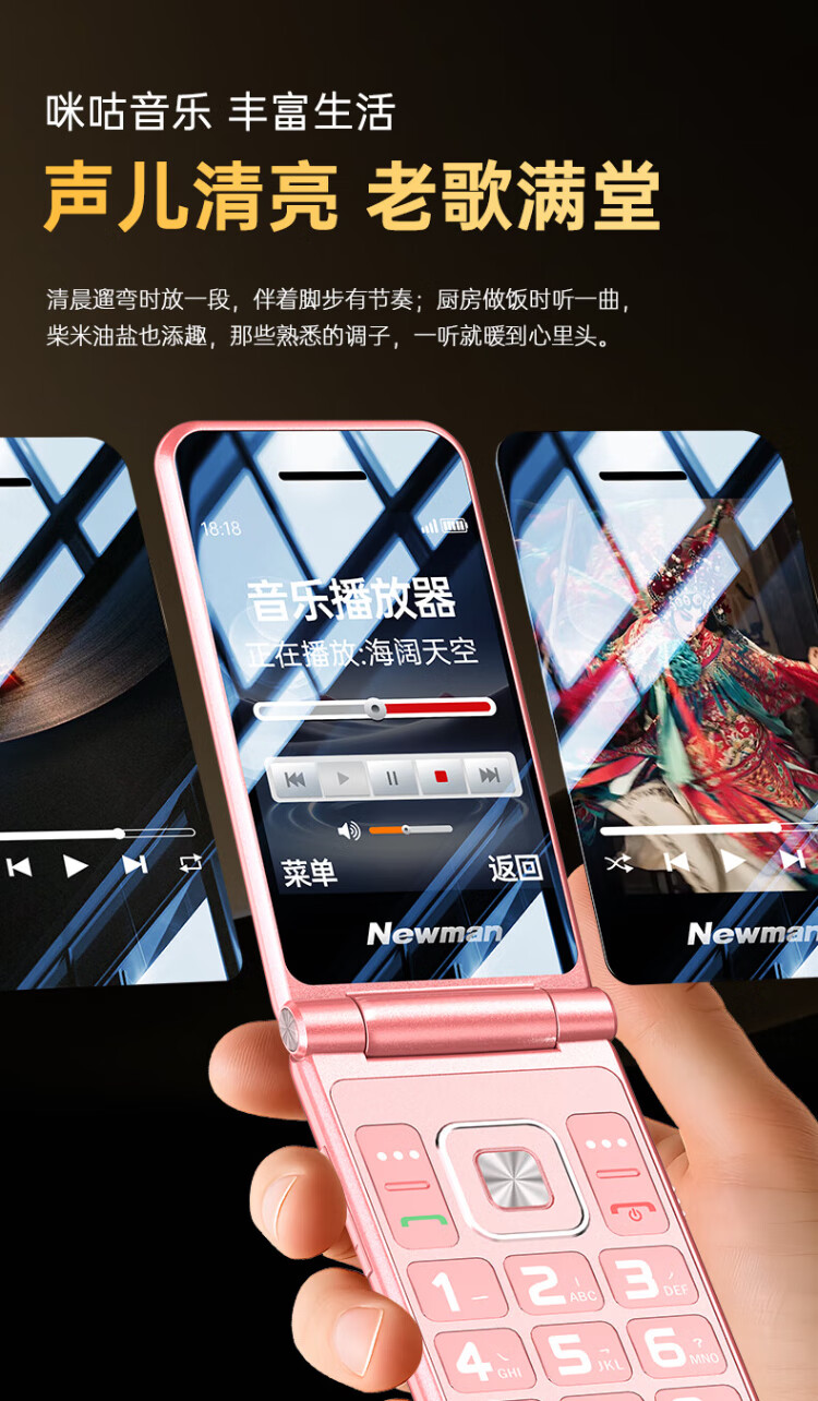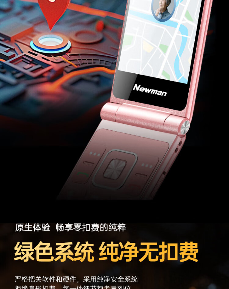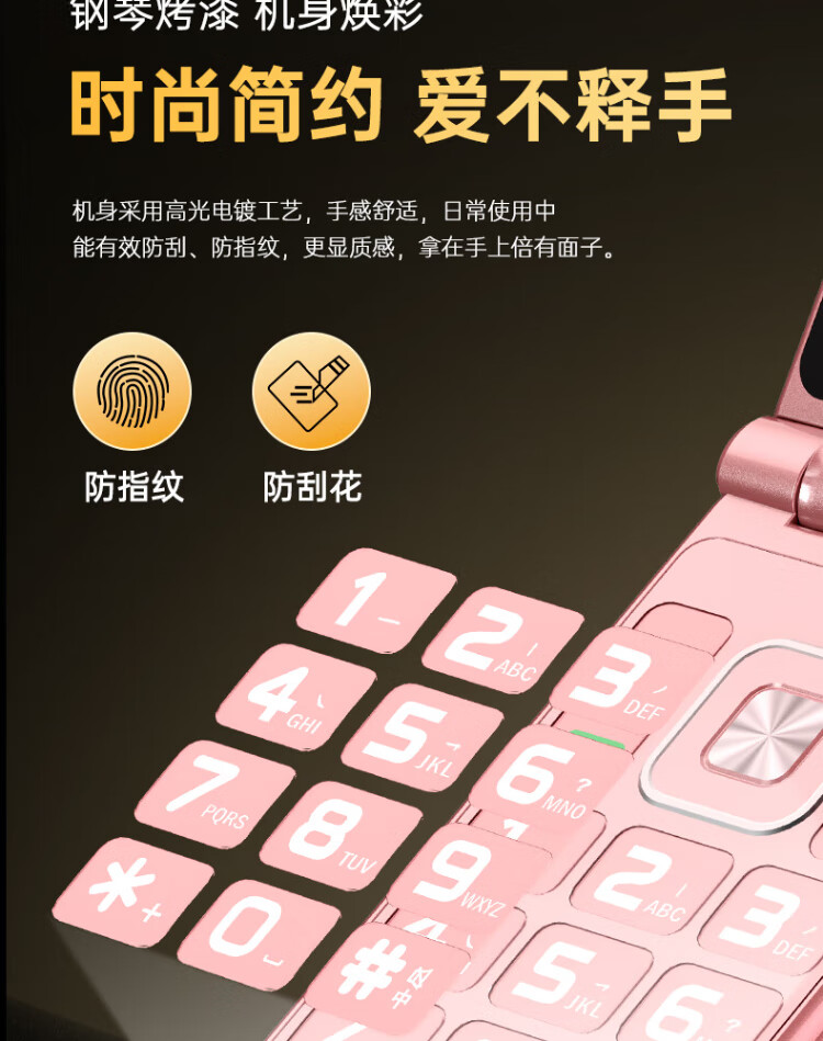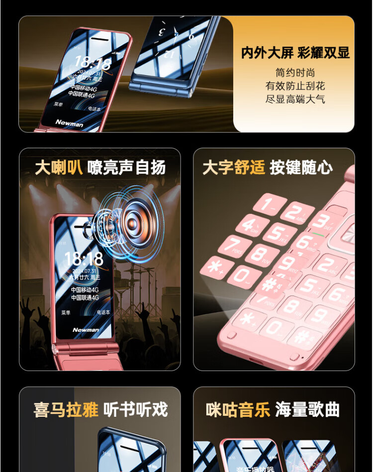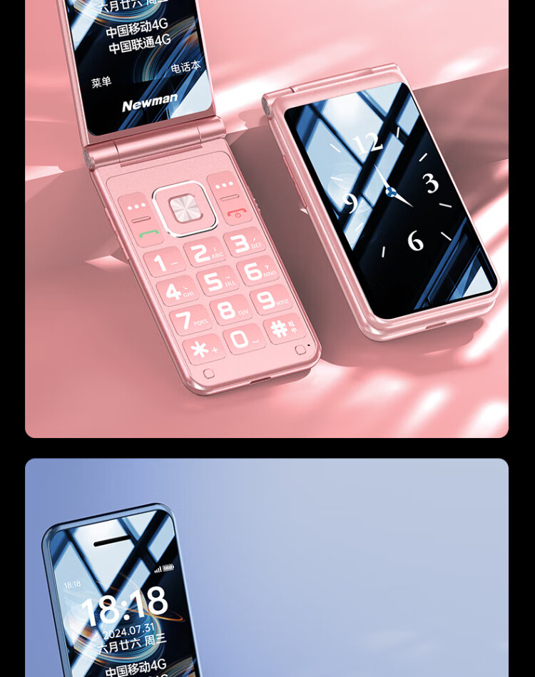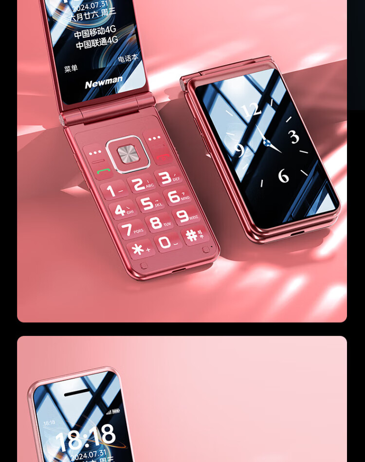 Newman (Newman) W90 flip phone 4G full network mobile phone for the elderly, super long standby phone for the elderly, dual SIM card, dual standby, loud sound, network, smart student button function phone, rose gold