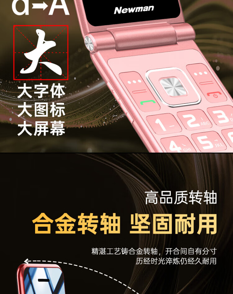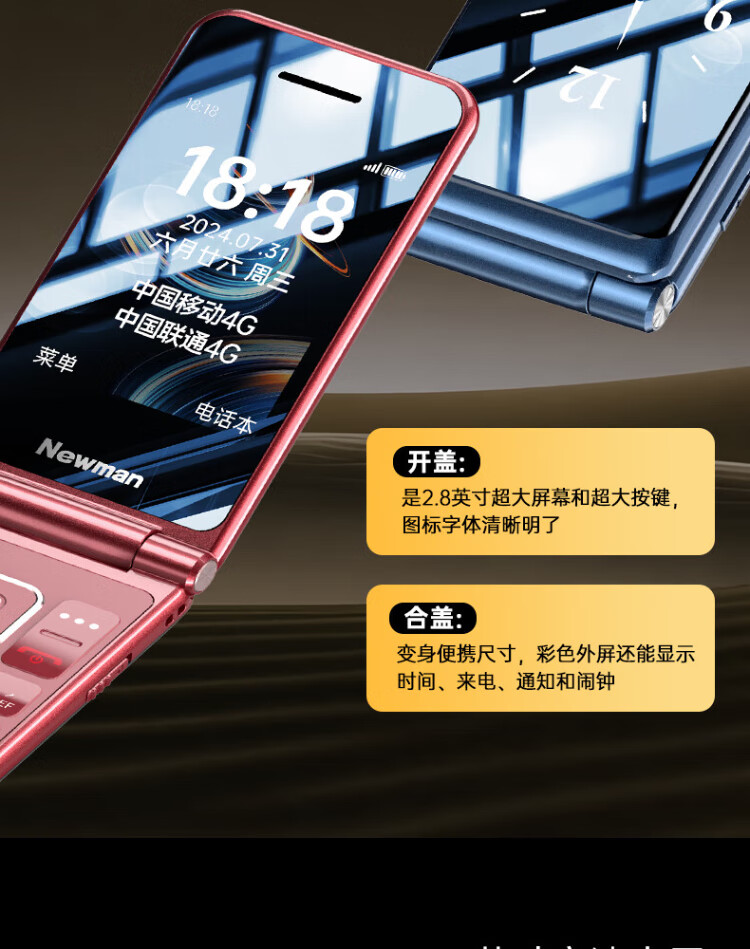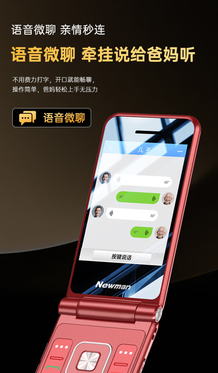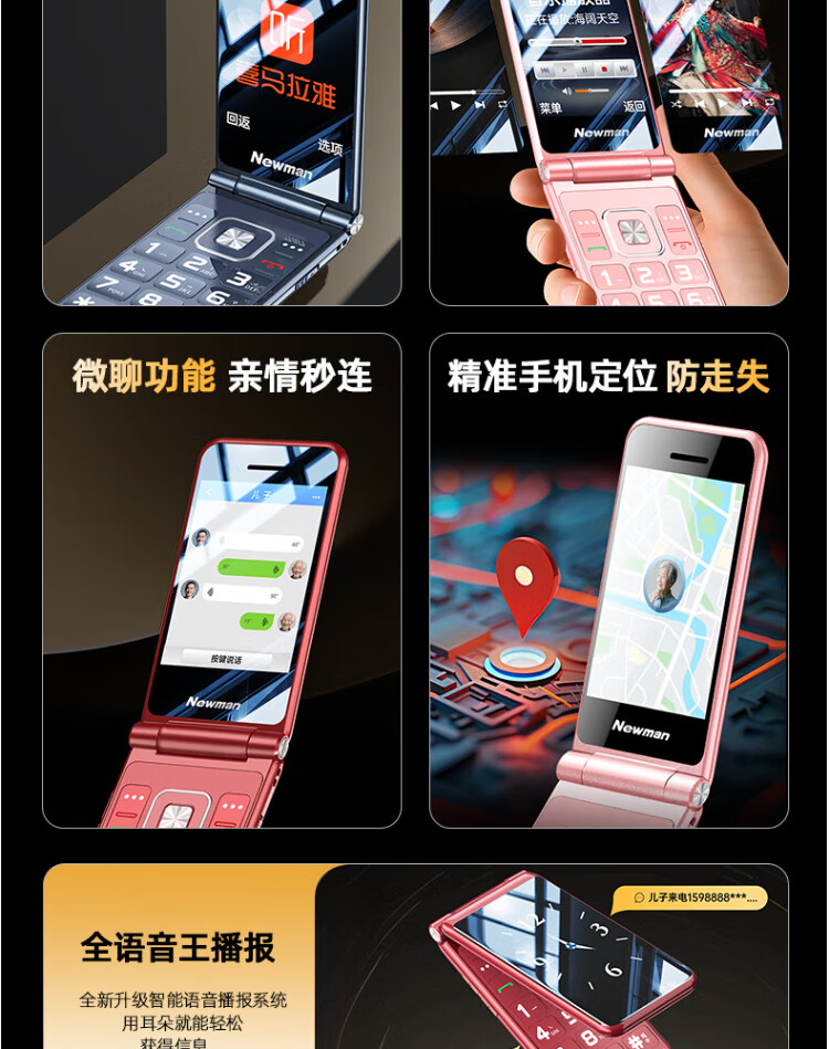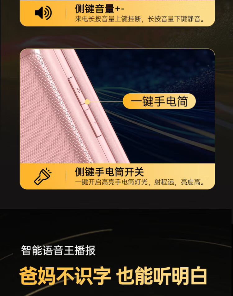 Newman (Newman) W90 flip phone 4G full network mobile phone for the elderly, super long standby phone for the elderly, dual SIM card, dual standby, loud sound, network, smart student button function phone, rose gold