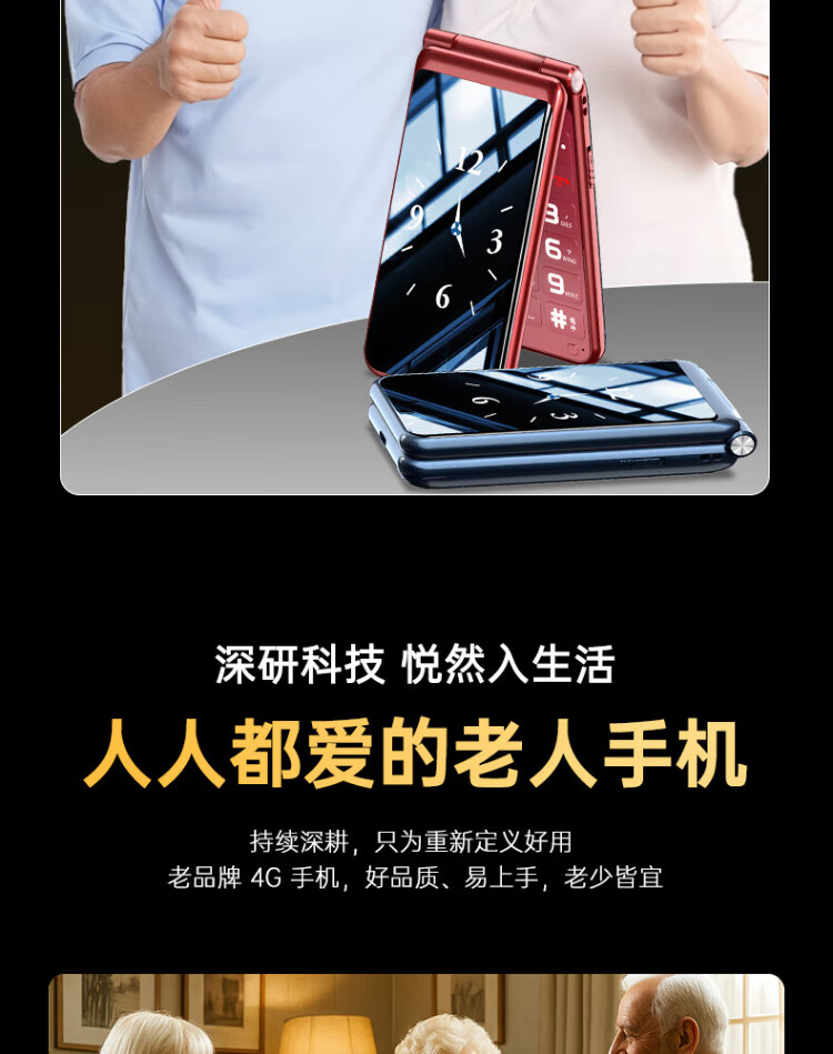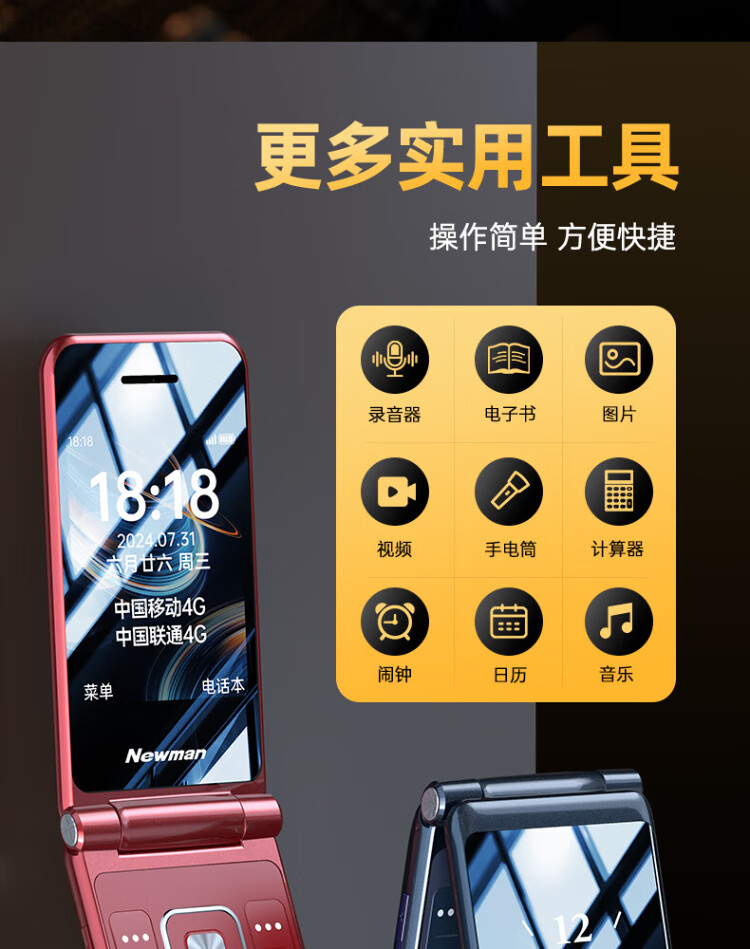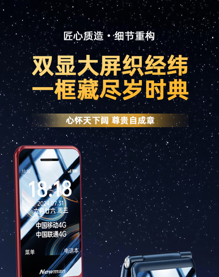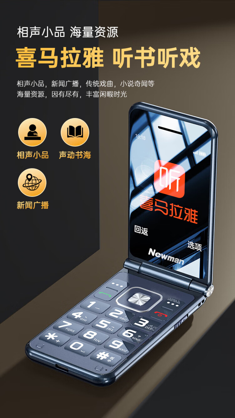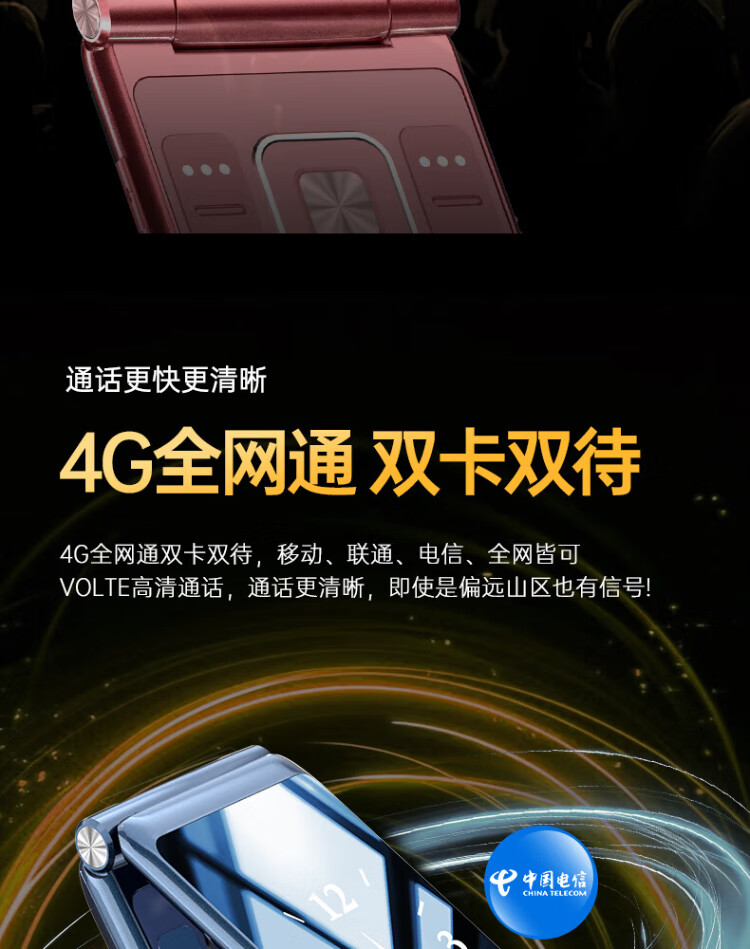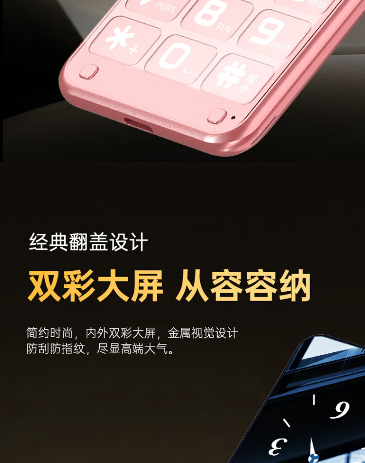 Newman (Newman) W90 flip phone 4G full network mobile phone for the elderly, super long standby phone for the elderly, dual SIM card, dual standby, loud sound, network, smart student button function phone, rose gold
