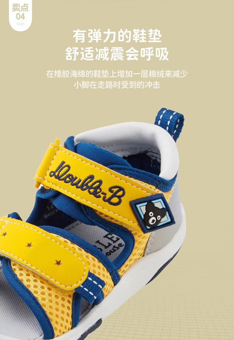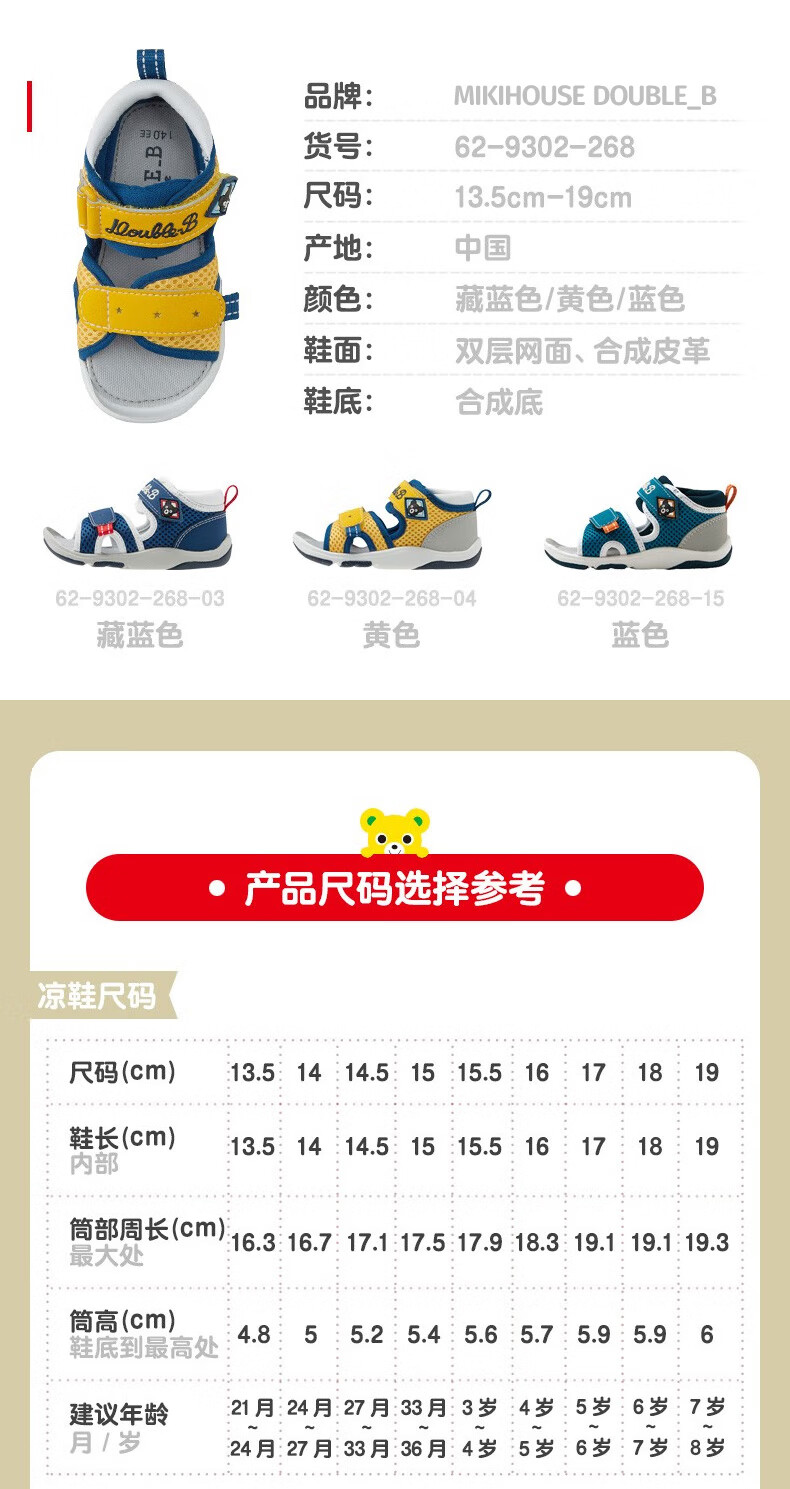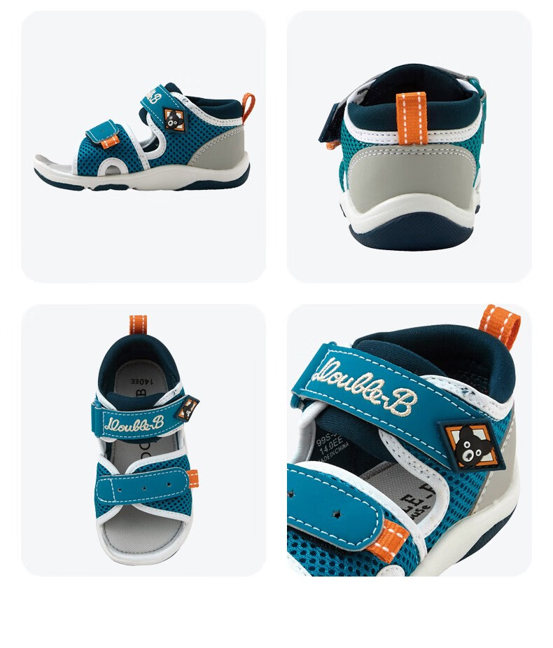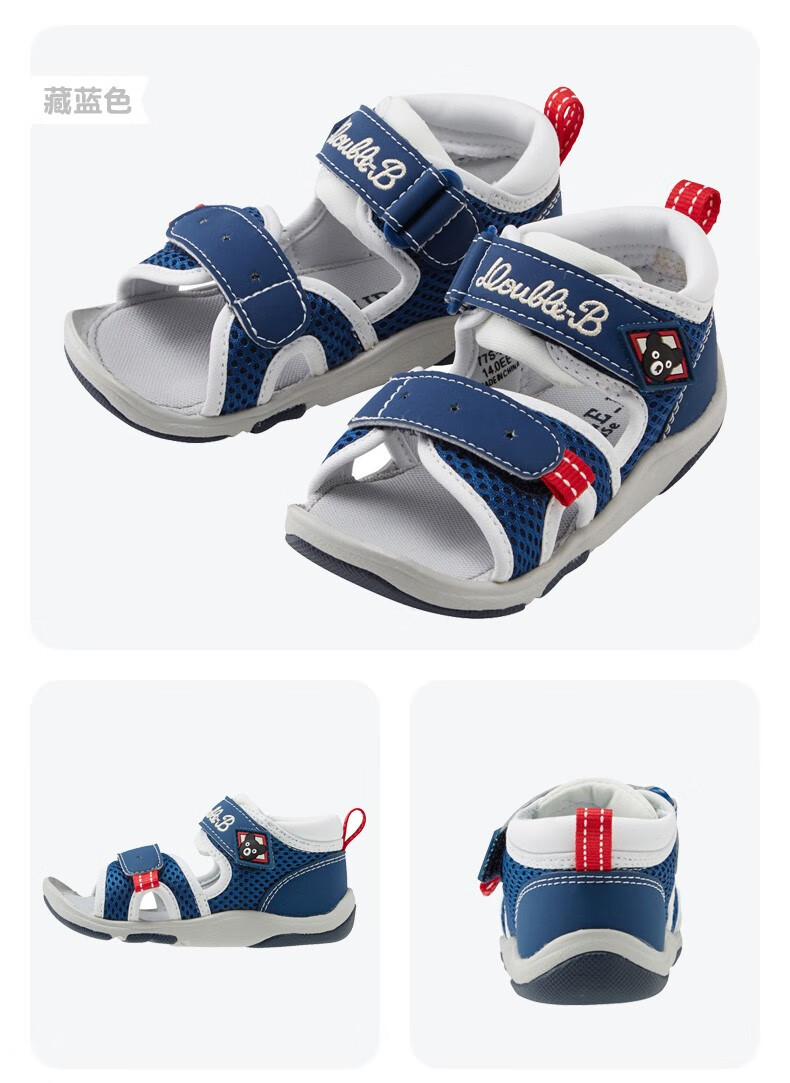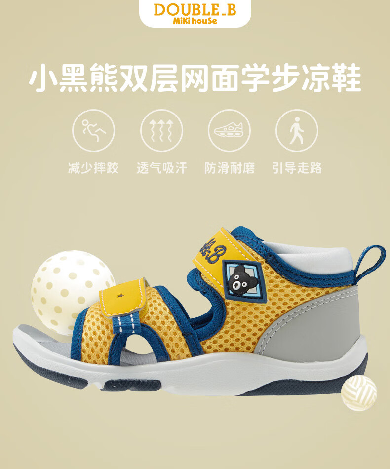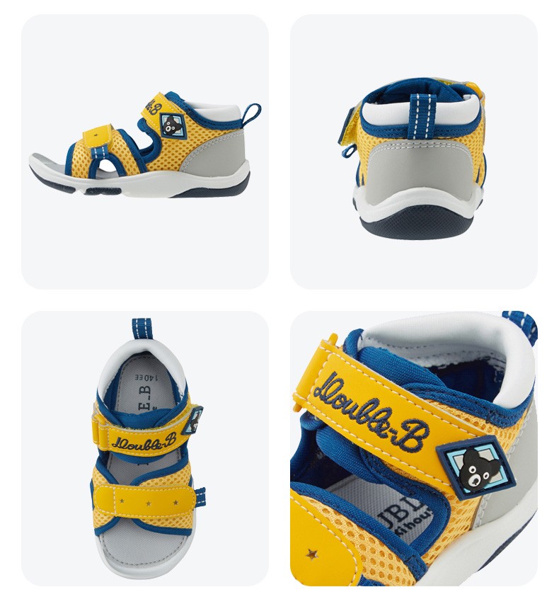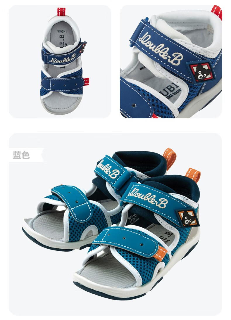 MIKIHOUSE Sandals Toddler Shoes Summer Little Black Bear Double-layer Mesh Breathable Anti-kick Toe Guard Toddler Sports Sandals Double_B Blue 15 (Suitable for feet 14.5cm long)
