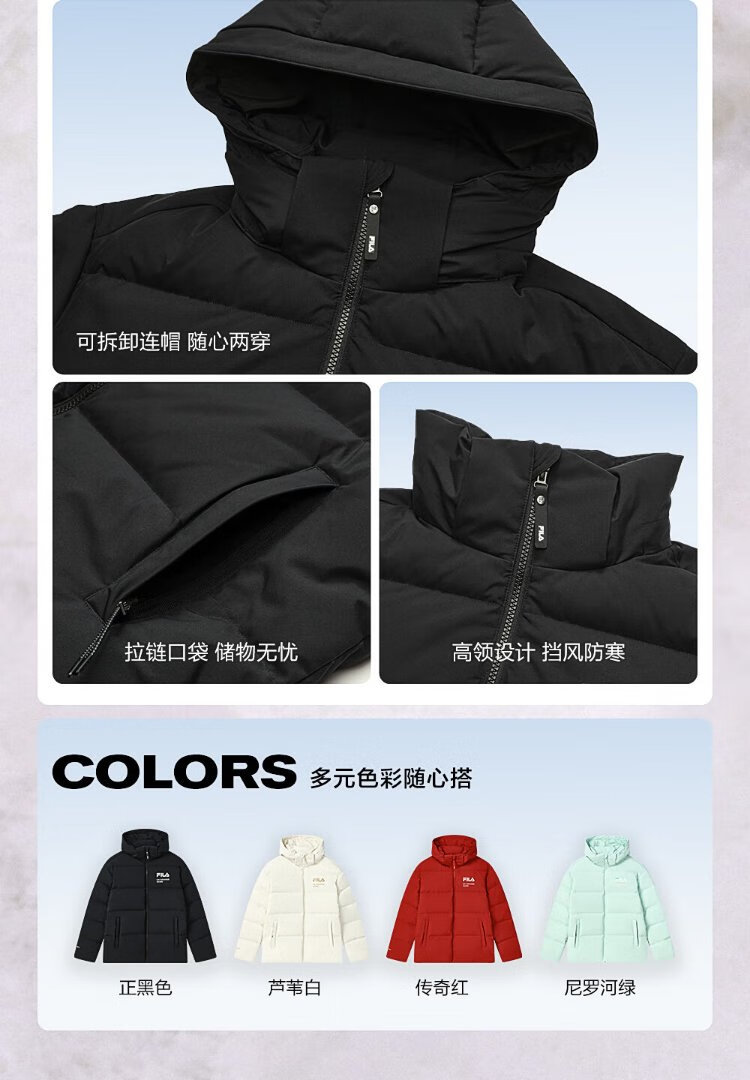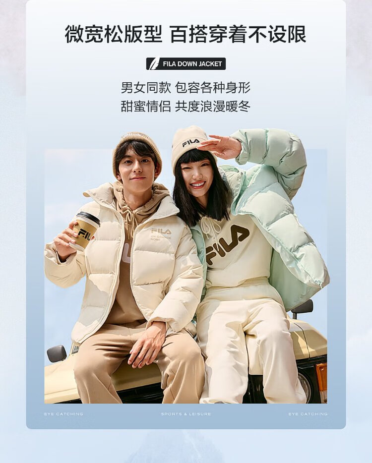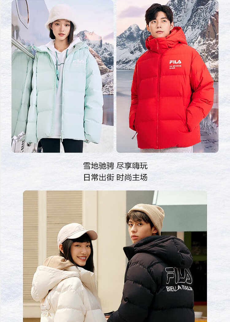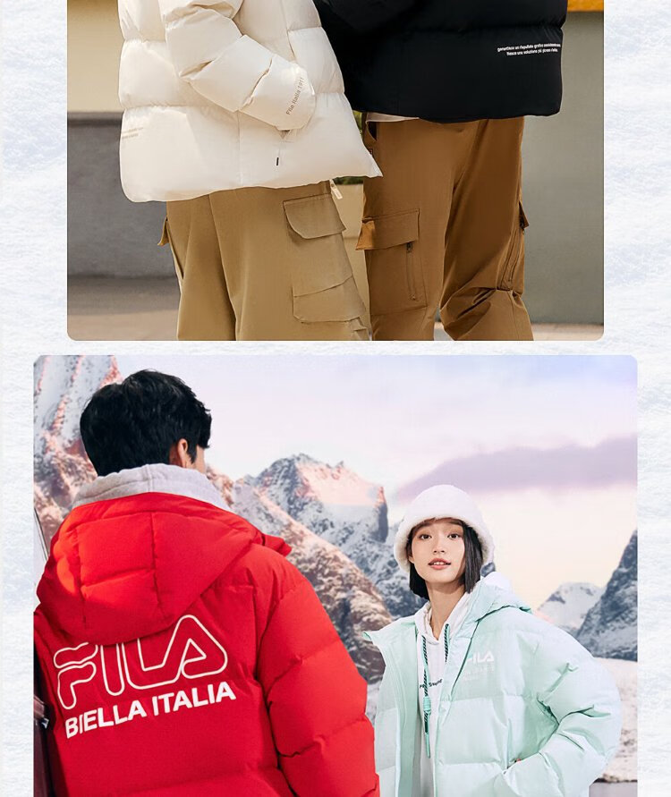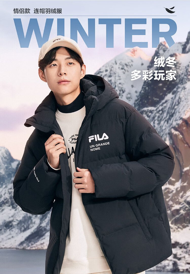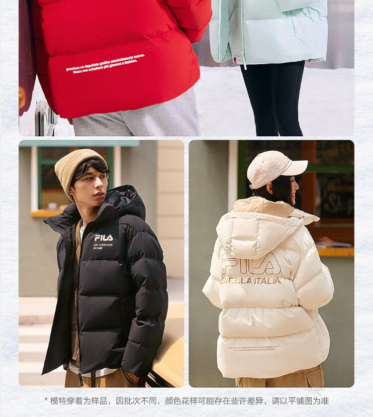 FILA Official RGB Down Couple's Down Jacket 2025 Winter Men's and Women's Loose Hooded Cold Warm Jacket