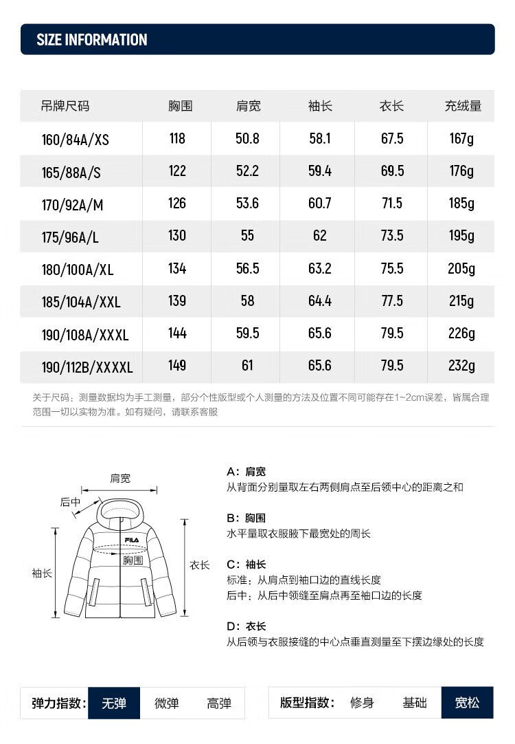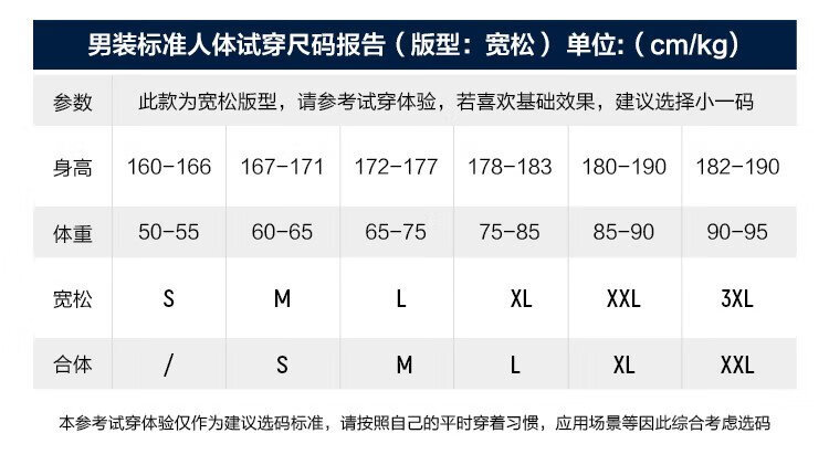 China (cm) 165 / 88-90 170 / 96-98 175 / 108-110 180 / 118-122 185 / 126-130
