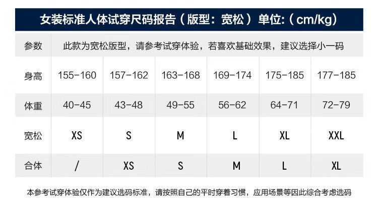 China (cm) 160-165/84-86 165-170 / 88-90 167-172 / 92-96 168-173 / 98-102 170-176 / 106-110