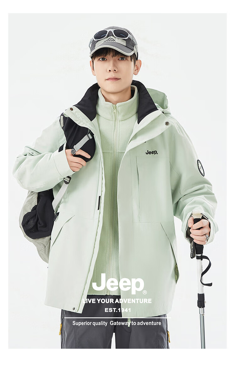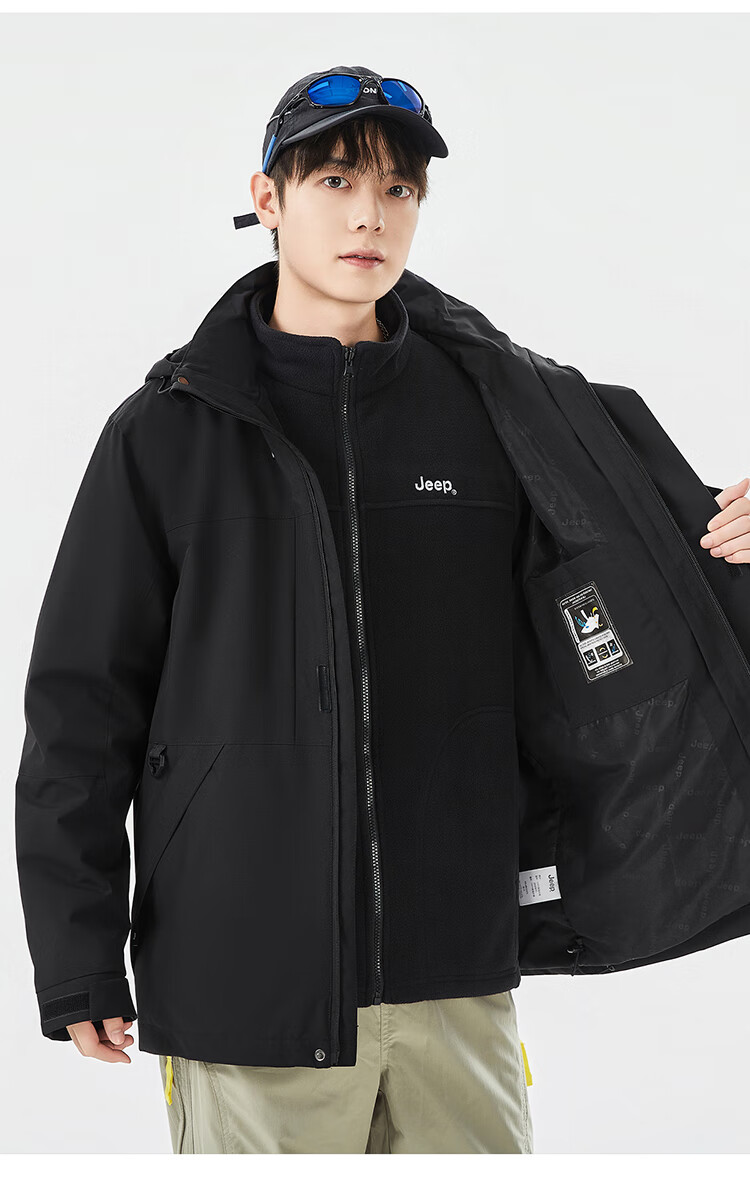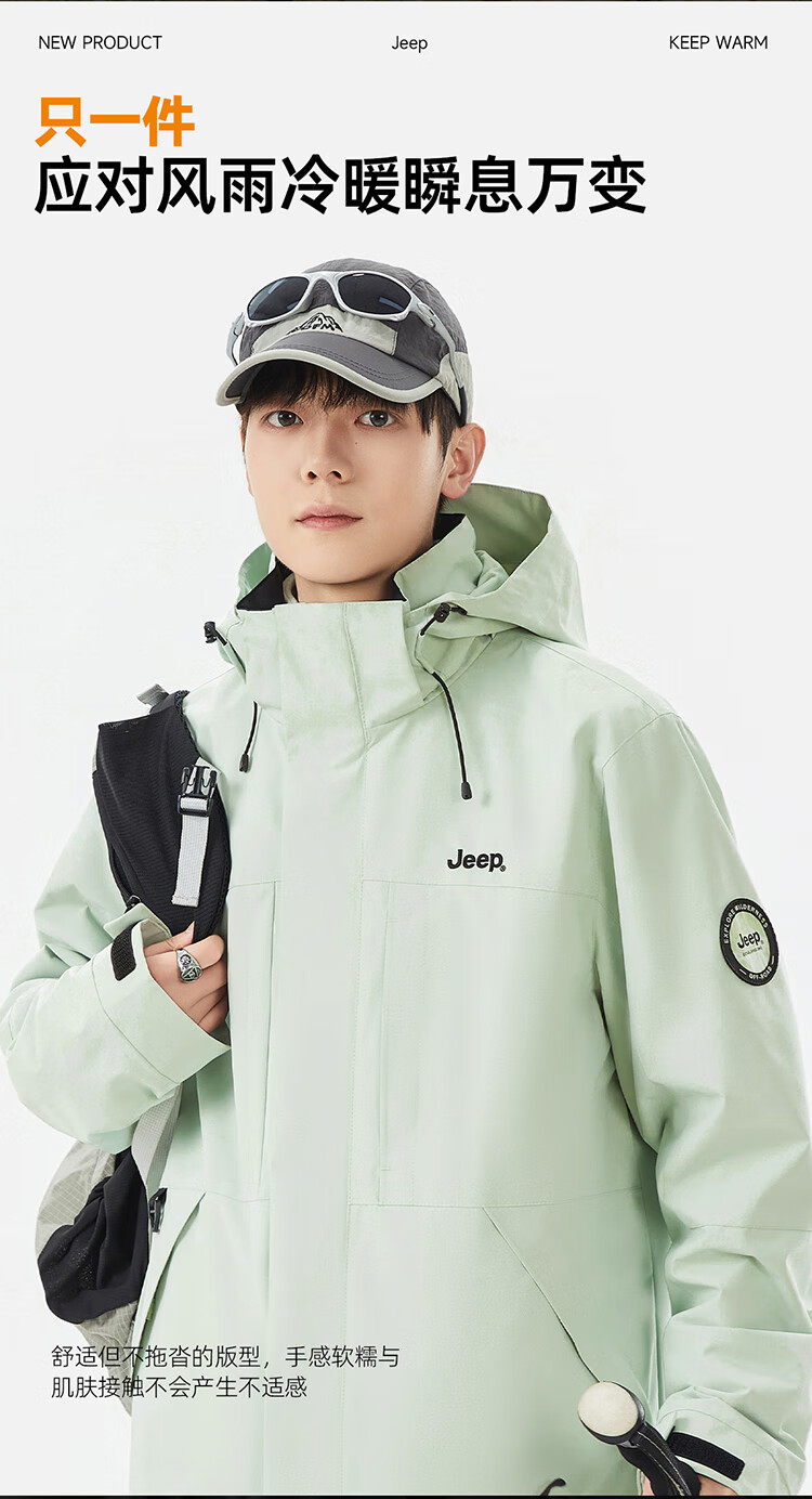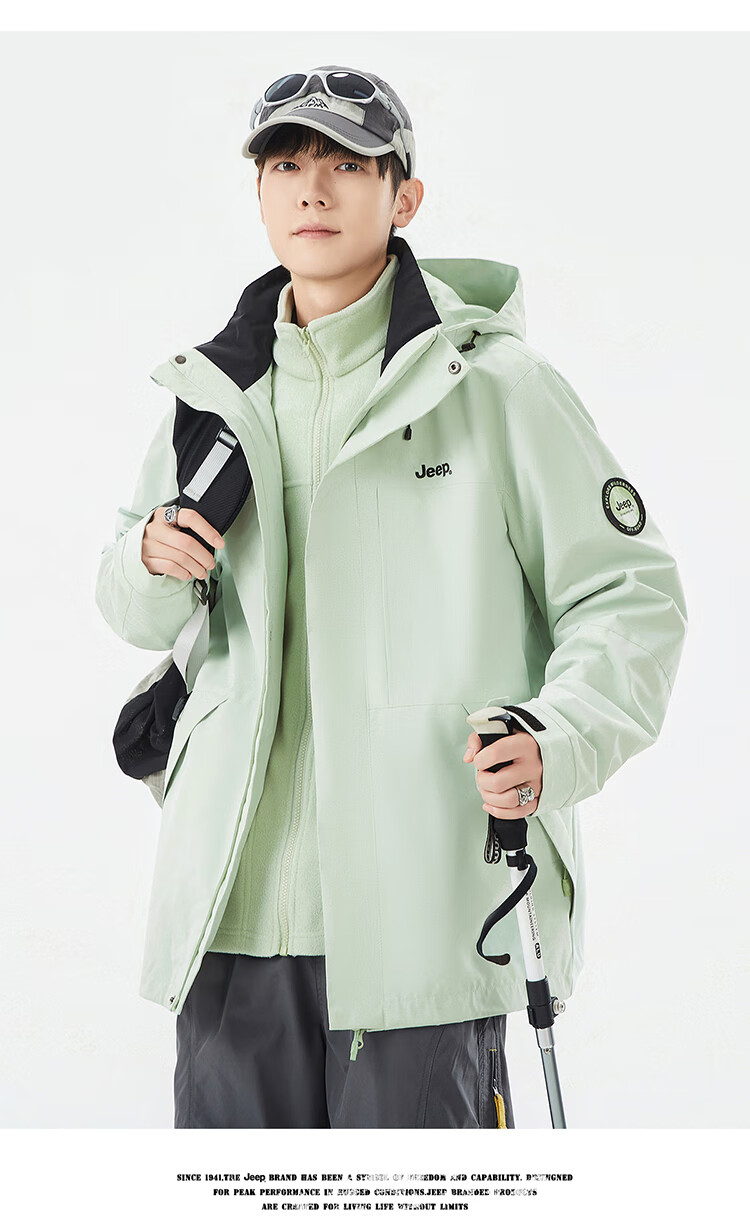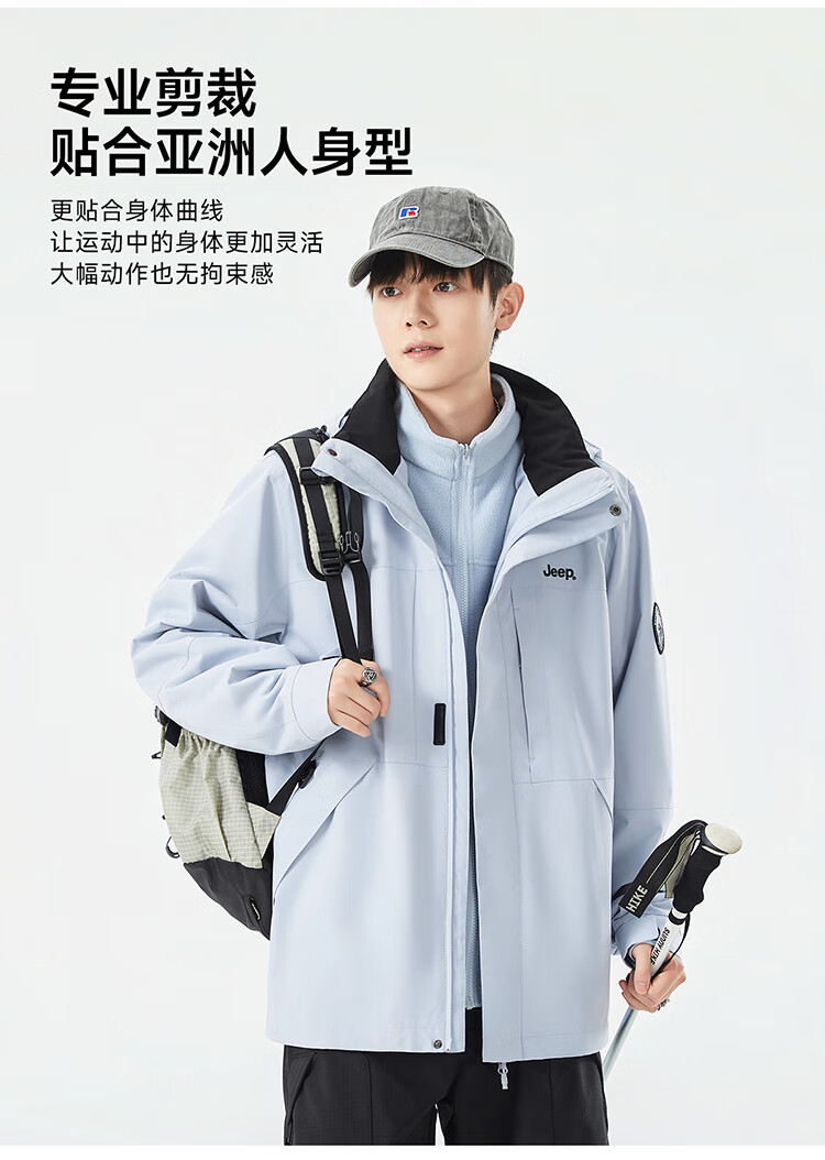 JEEP assault jacket for men and women, three-in-one outdoor warm windproof jacket for men, moonlight blue (fleece) L