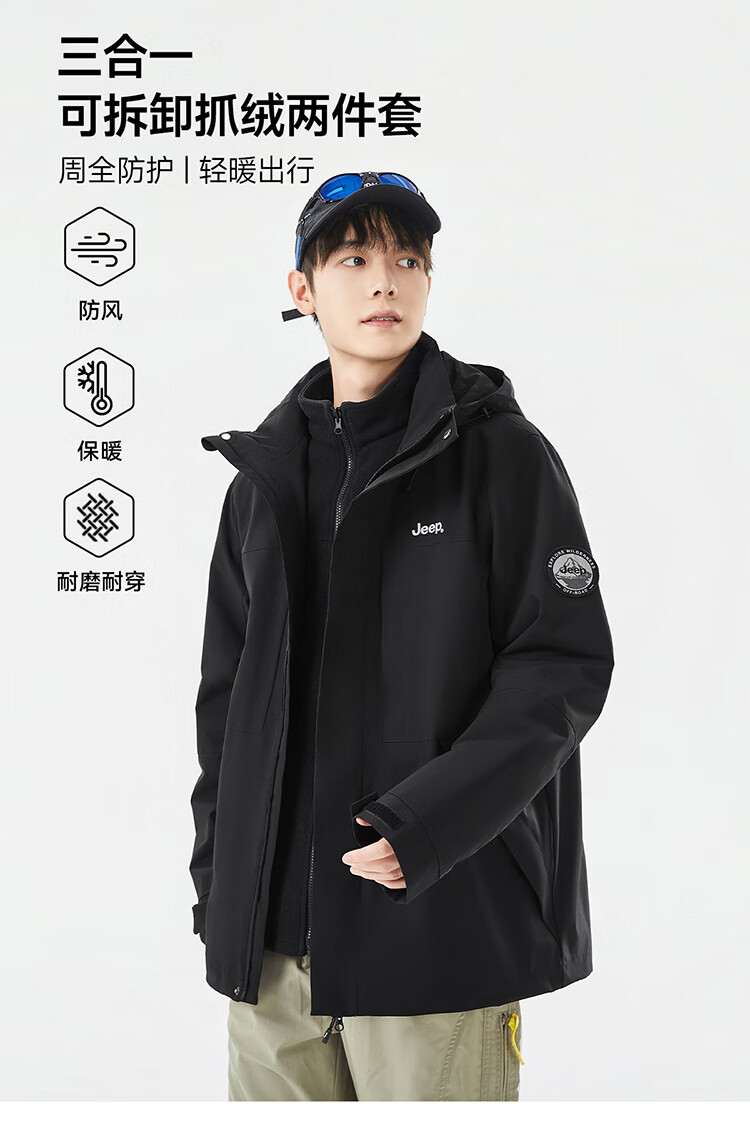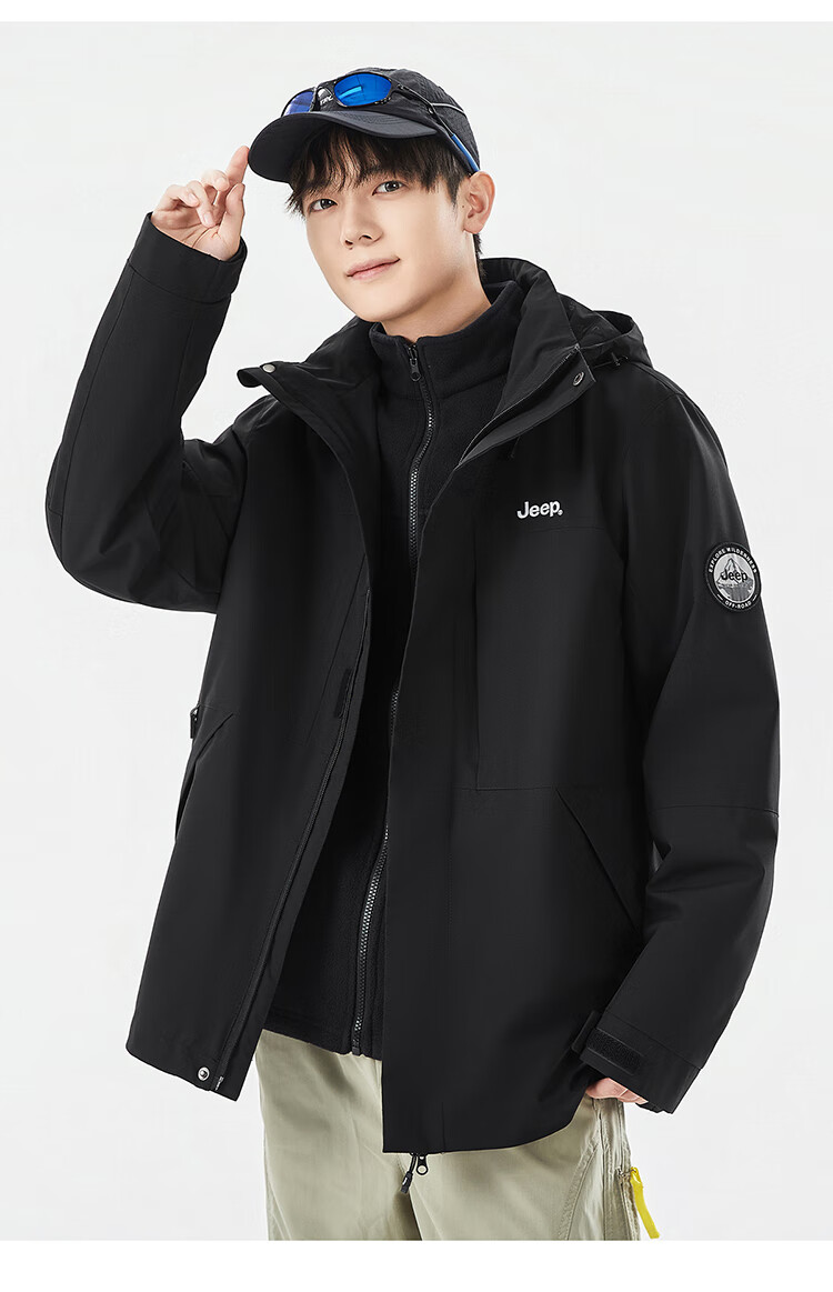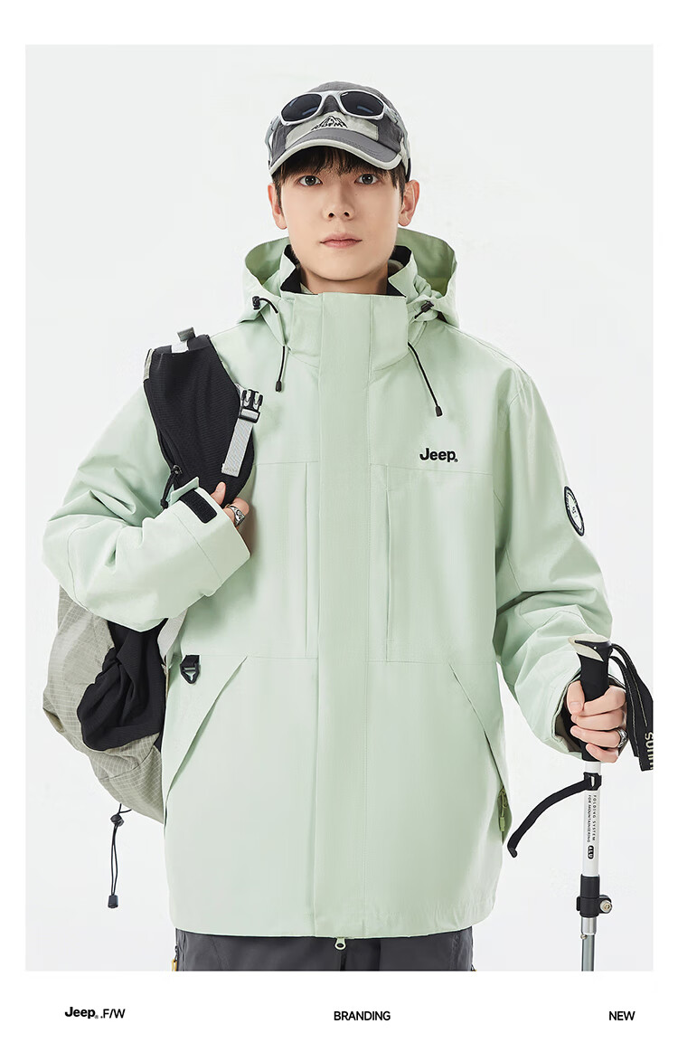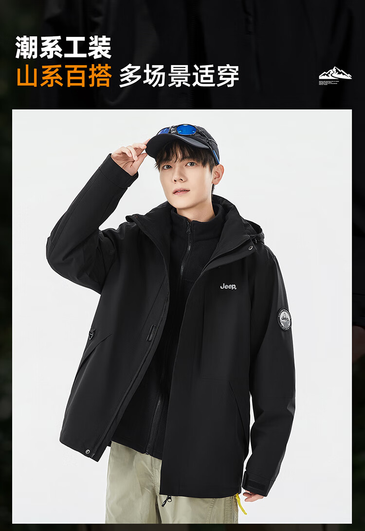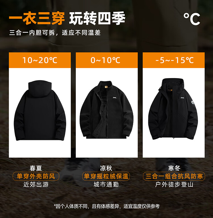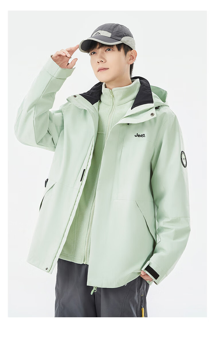 JEEP assault jacket for men and women, three-in-one outdoor warm windproof jacket for men, moonlight blue (fleece) L