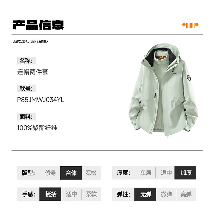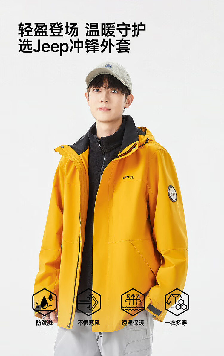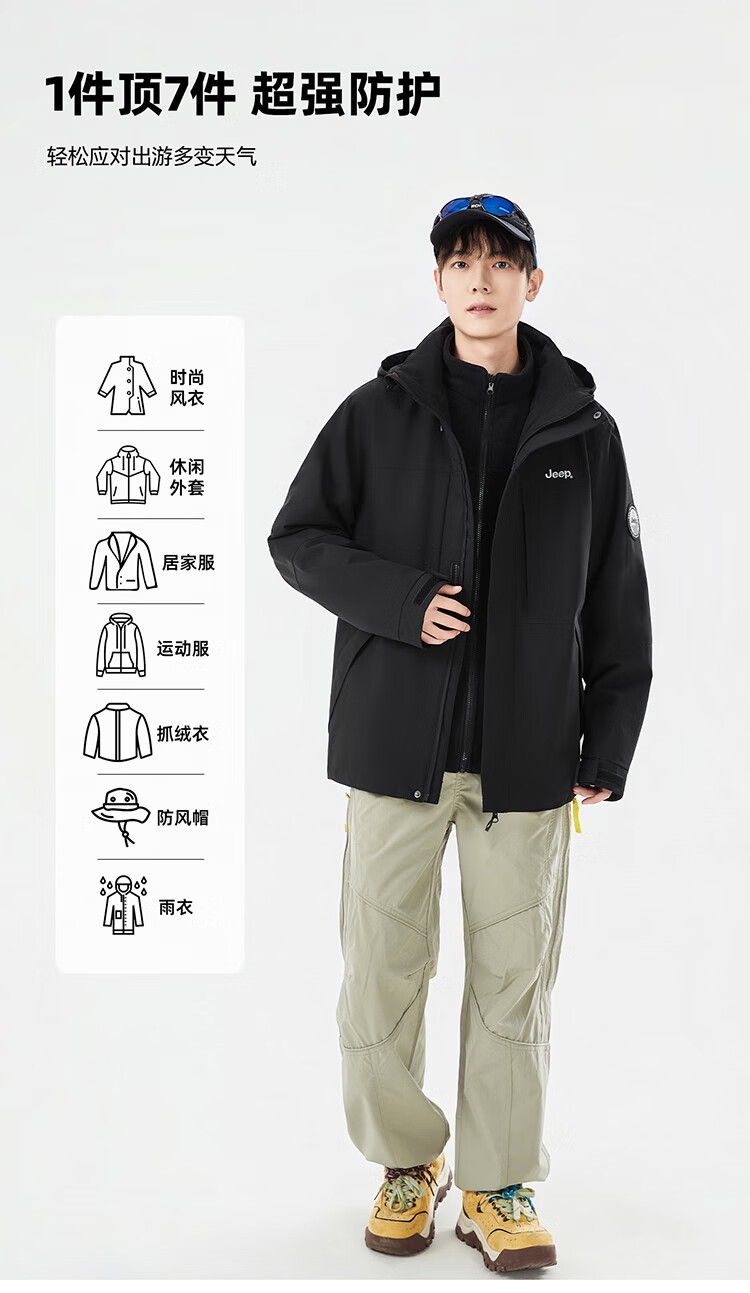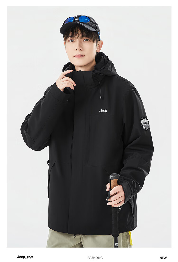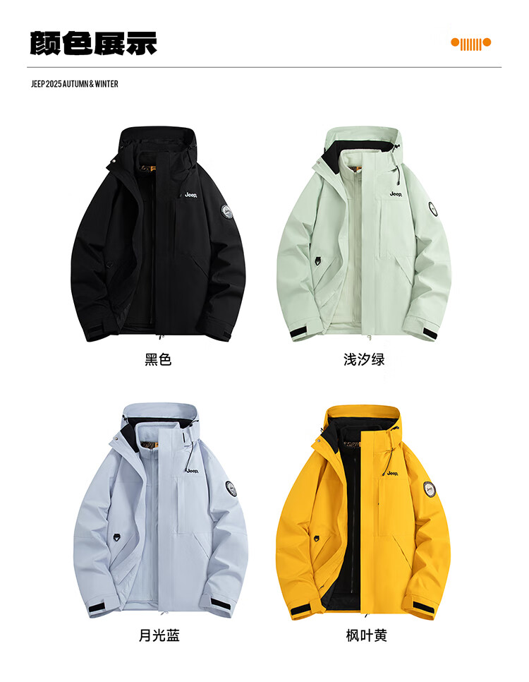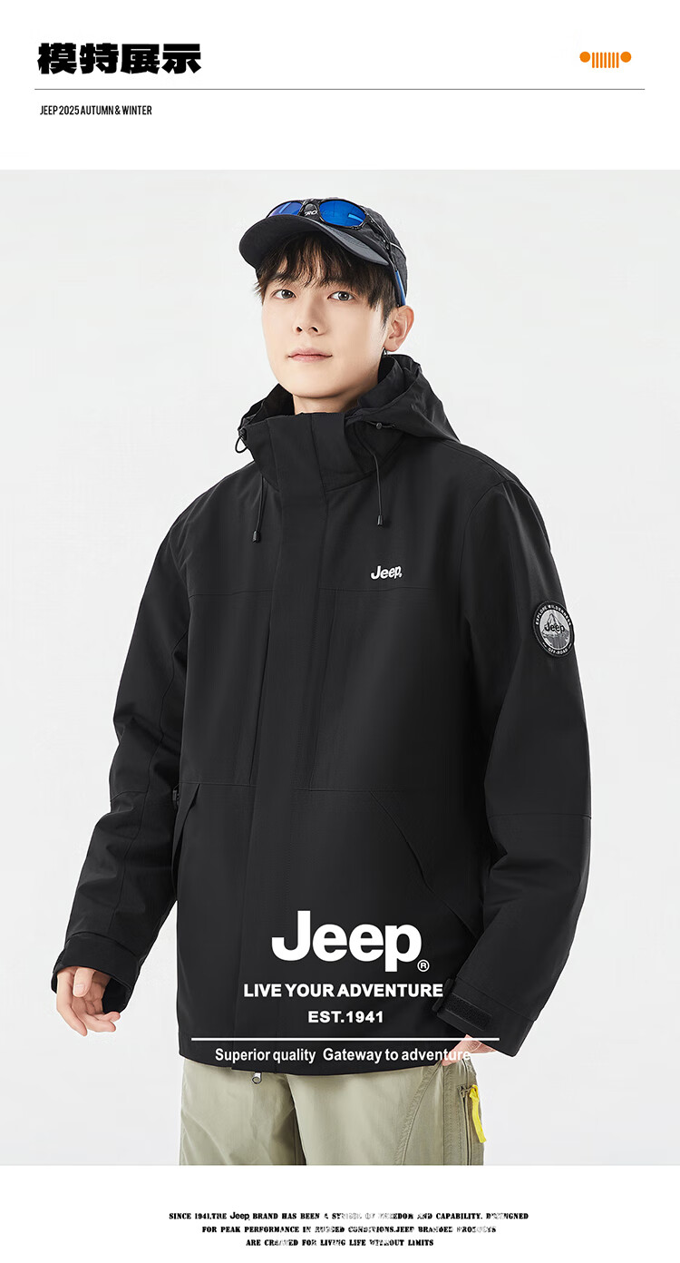 JEEP assault jacket for men and women, three-in-one outdoor warm windproof jacket for men, moonlight blue (fleece) L