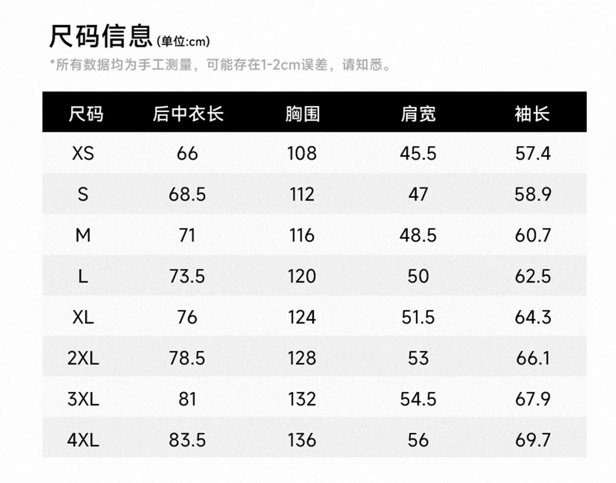 Size (cm) 42 44 46 48 50