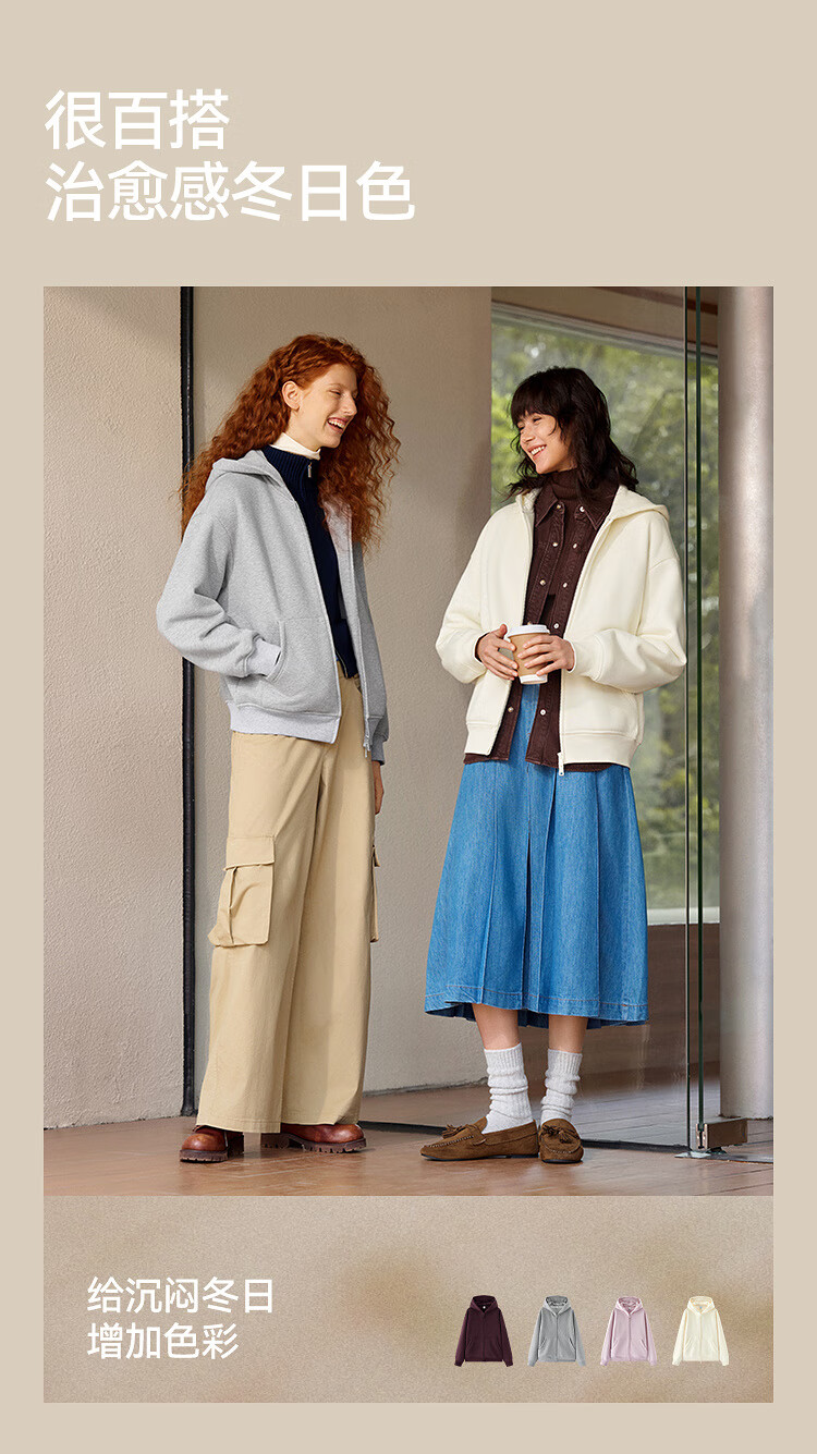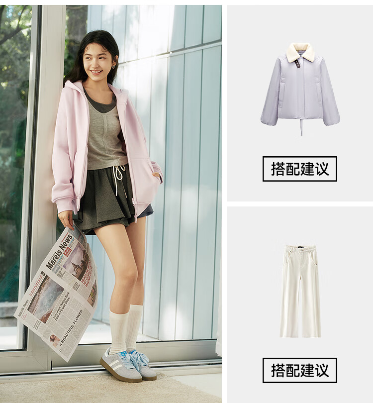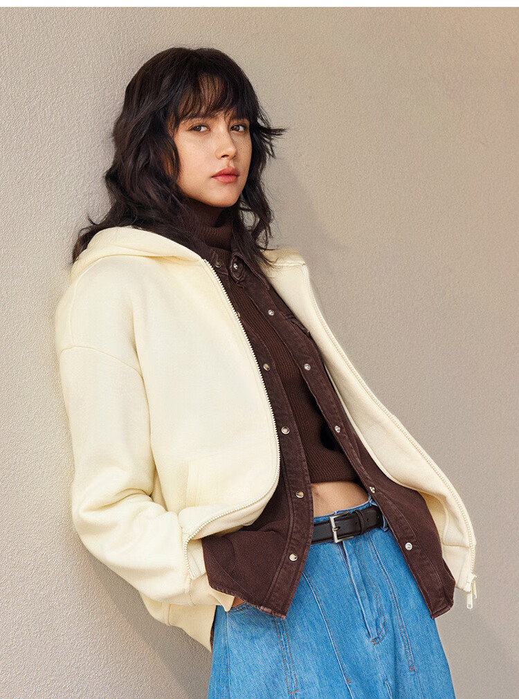 Semir coat women's polar fleece off-shoulder loose and lazy temperament winter 2025 hooded jacket ins trend 109725108005