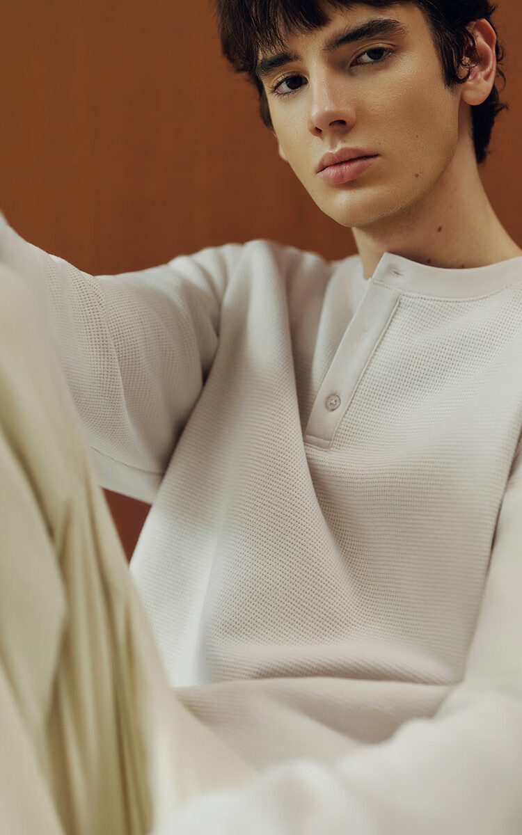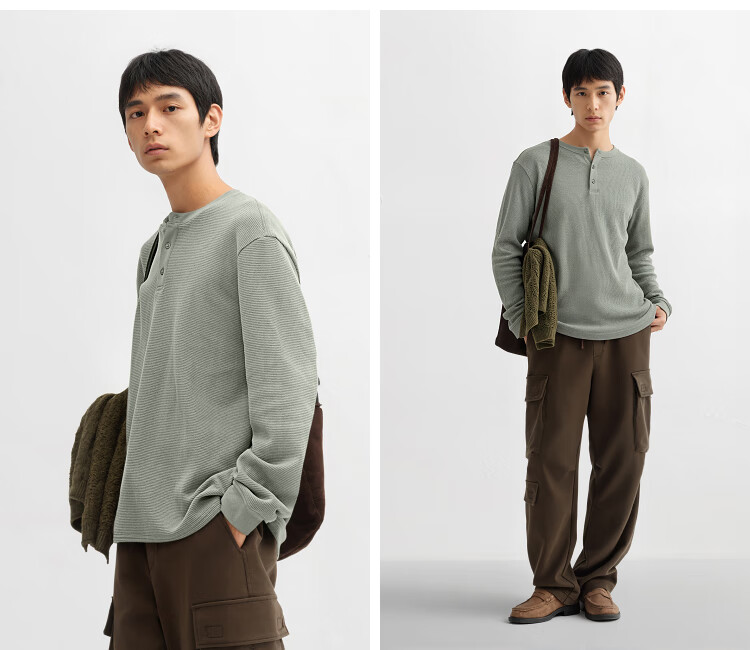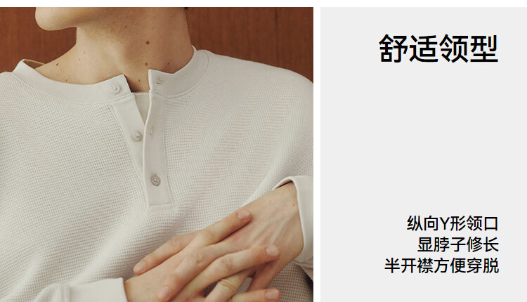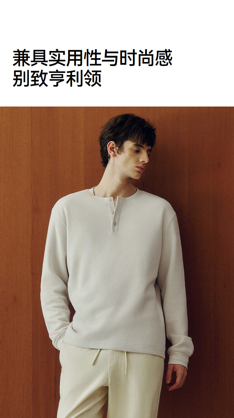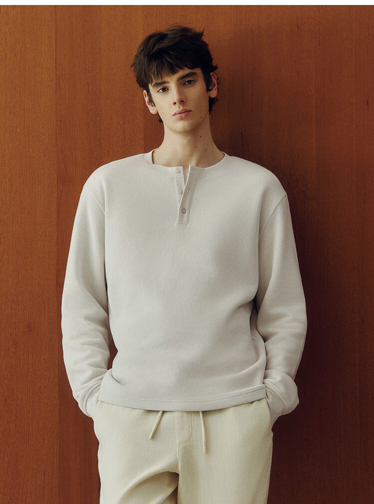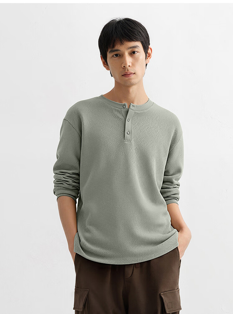 Semir long-sleeved T-shirt men's waffle solid color versatile bottoming shirt winter 2025 top Henry collar 109725101101
