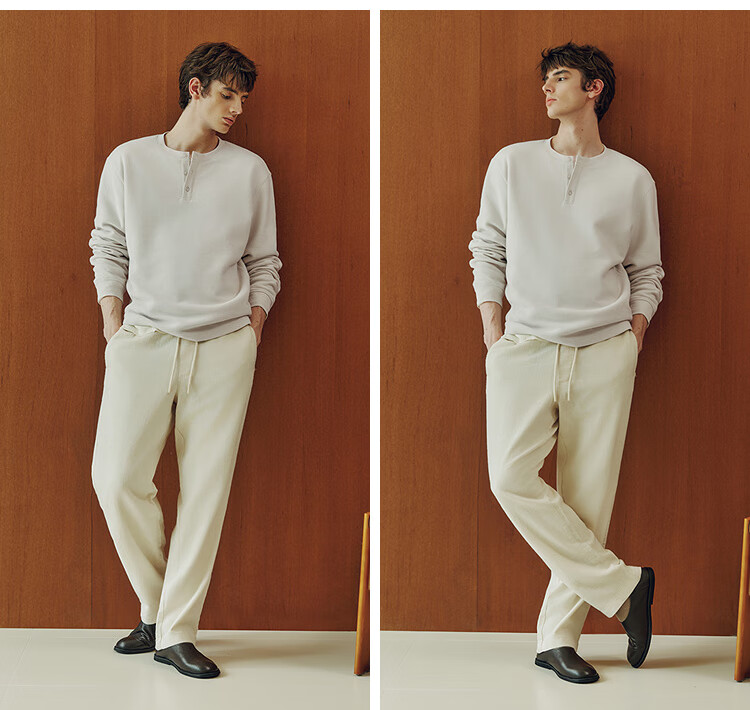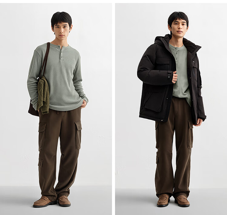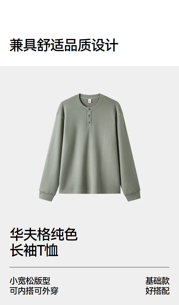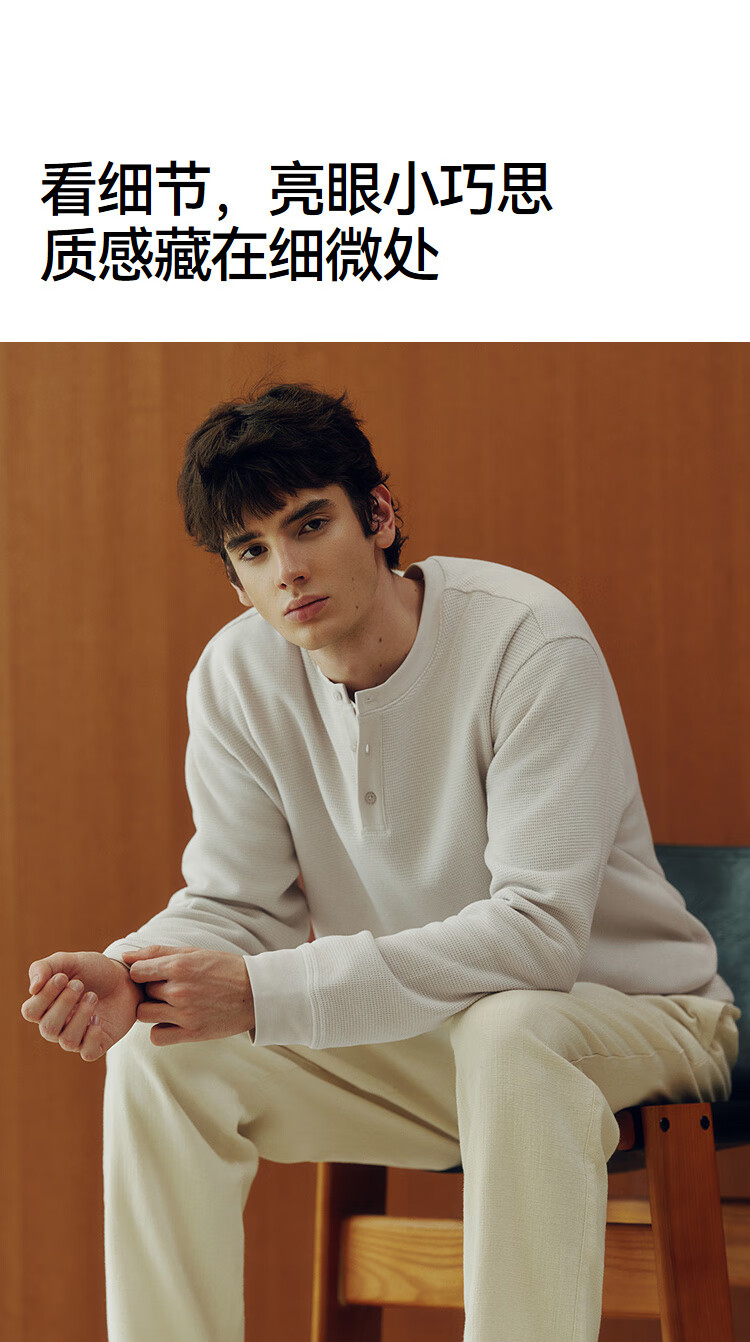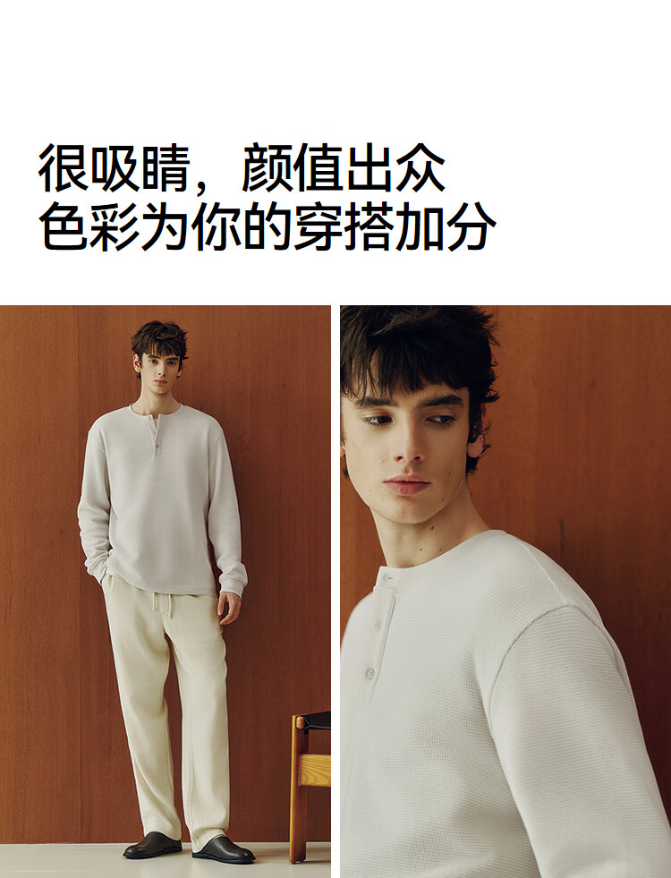 Semir long-sleeved T-shirt men's waffle solid color versatile bottoming shirt winter 2025 top Henry collar 109725101101