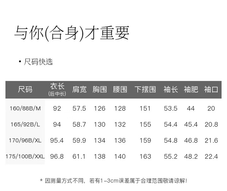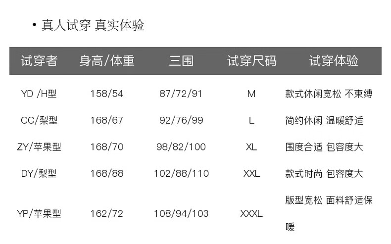 China (cm) 160-165/84-86 165-170 / 88-90 167-172 / 92-96 168-173 / 98-102 170-176 / 106-110