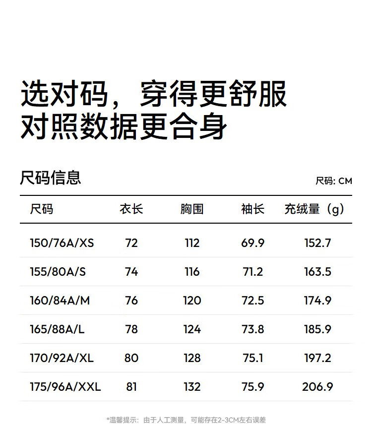 China (cm) 160-165/84-86 165-170 / 88-90 167-172 / 92-96 168-173 / 98-102 170-176 / 106-110