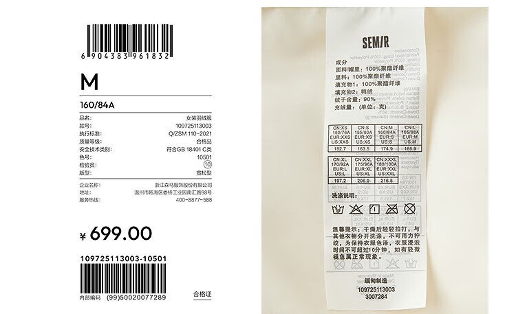 Semir down jacket women's winter mid-length 90 velvet three-proof slim turtleback silhouette 2025 warm jacket 109725113003