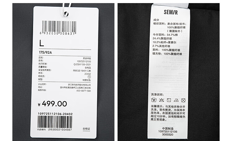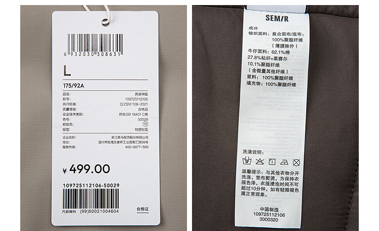 Semir cotton coat men's fake two-piece pilot stitched denim cotton coat 2025 oversize winter 109725112106