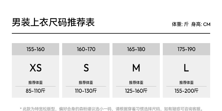 China (cm) 160-165/84-86 165-170 / 88-90 167-172 / 92-96 168-173 / 98-102 170-176 / 106-110